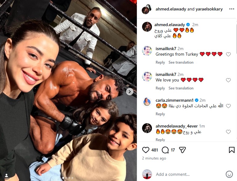 ونشر أحمد العوضي صورًا من حلبة المصارعة لتشويق جمهوره، من خلال حسابه الرسمي عبر موقع تبادل الصور والفيديوهات القصيرة إنستجرام، وعلق: علي وروح.. علي كلاي.