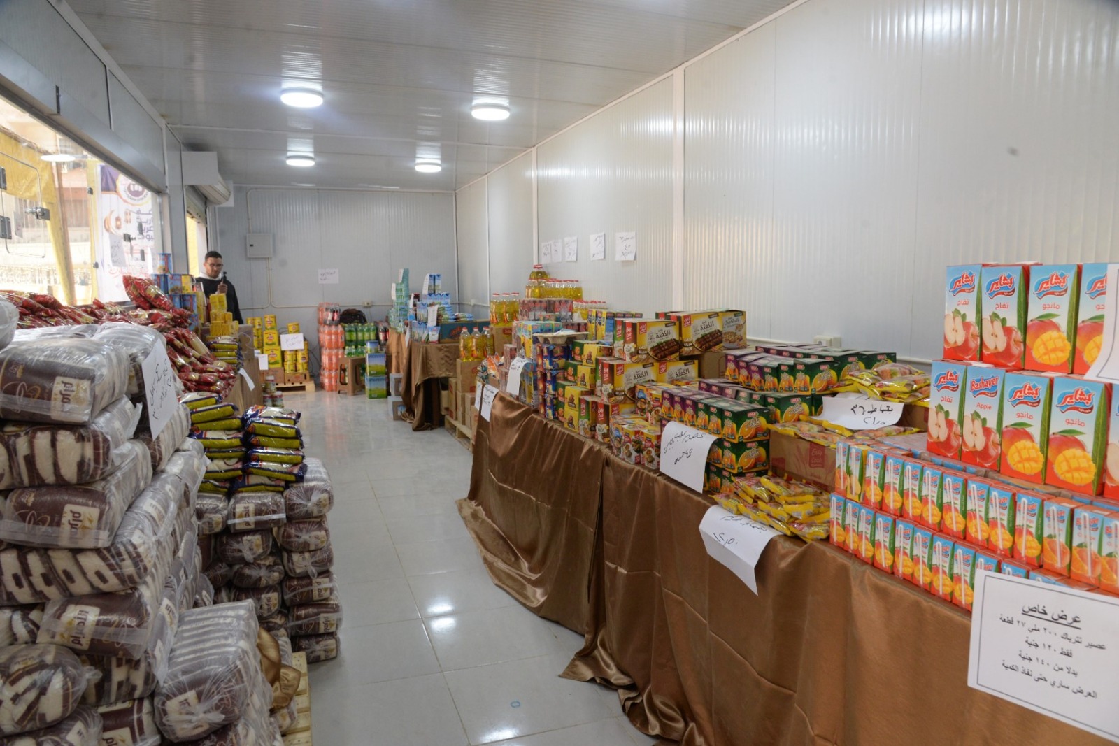 وخلال جولته التفقدية، اطلع المحافظ على أقسام المعرض التي تضم تشكيلة واسعة من السلع الأساسية، تشمل السكر، الزيت، الأرز، المكرونة، الدقيق، البلح، منتجات الألبان، الجبن، والحلويات بمختلف أنواعها، إلى جانب سلع استراتيجية أخرى تطرح بأسعار مخفضة لتلبية احتياجات المواطنين خلال الشهر الكريم.