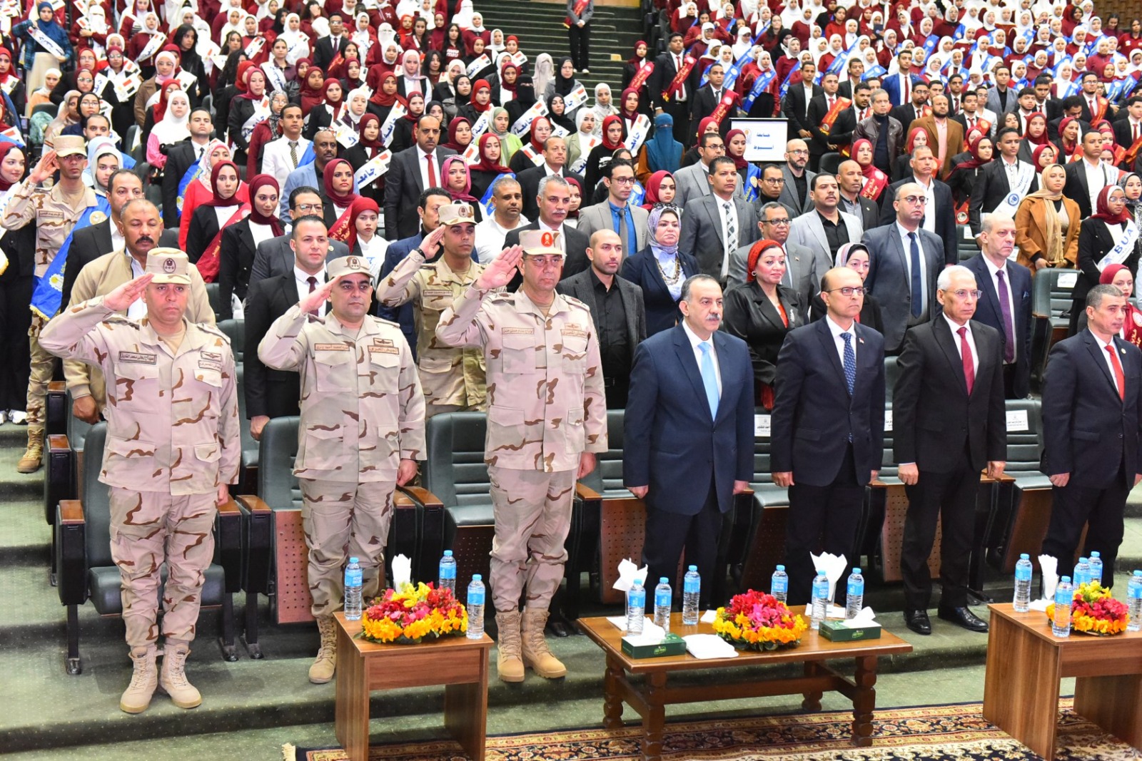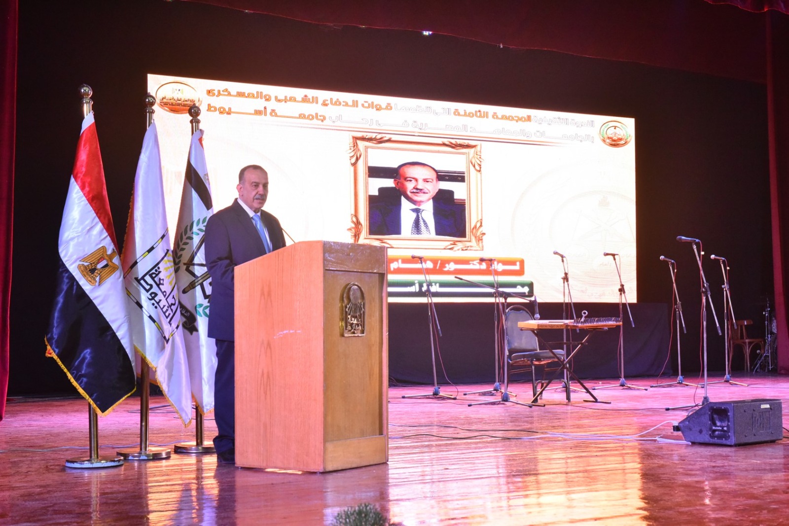 محافظ أسيوط يشهد الندوة التثقيفية المجمعة لقوات الدفاع الشعبي والعسكري بالجامعة