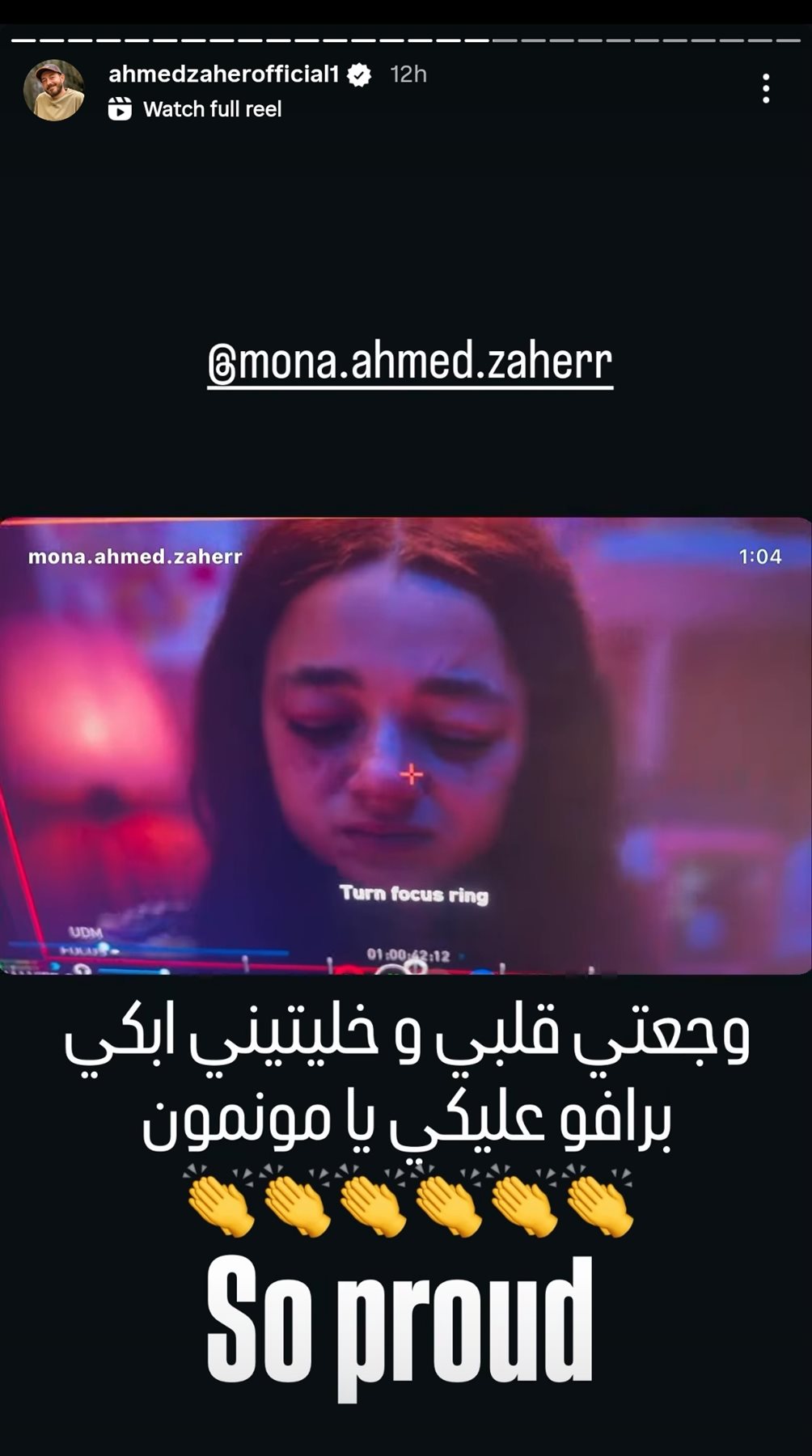 ونشر أحمد زاهر مقطع فيديو لابنته منى من خلال حسابه الرسمي عبر موقع تبادل الصور والفيديوهات القصيرة إنستجرام، عبر خاصية ستوري، وعلق: وجعتي قلبي وخلتيني أبكي برافوا عليكي يا مونمون.. فخور جدًا.