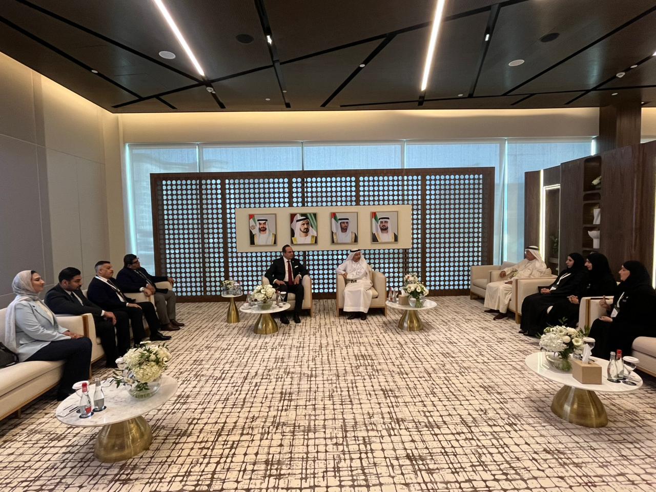 كما عقد رئيس الهيئة لقاءً موسعًا مع قيادات مجموعة M42 – مبادلة للرعاية الصحية، إحدى كبرى المجموعات العالمية في مجال الرعاية الصحية المتقدمة، حيث ضم اللقاء كلًا من السيد كريم شاهين، الرئيس التنفيذي لمنصة الحلول الصحية الرقمية للمجموعة M42، والسيد محمد زريقي، نائب الرئيس للشئون التجارية والشراكات، والدكتور هزاع الظاهري، رئيس قسم تطوير الأعمال الدولية، والسيد راغد الأحمد، مدير المبيعات.