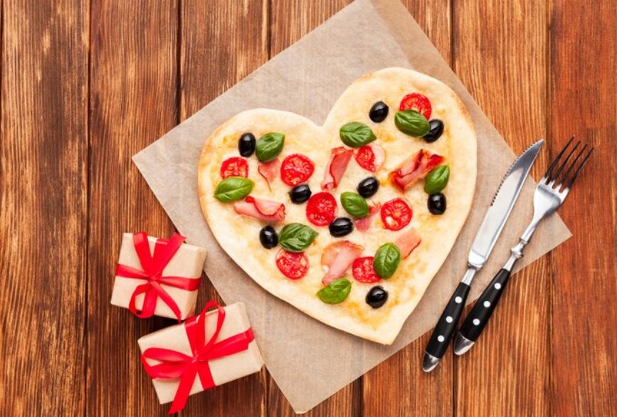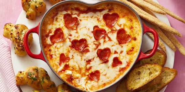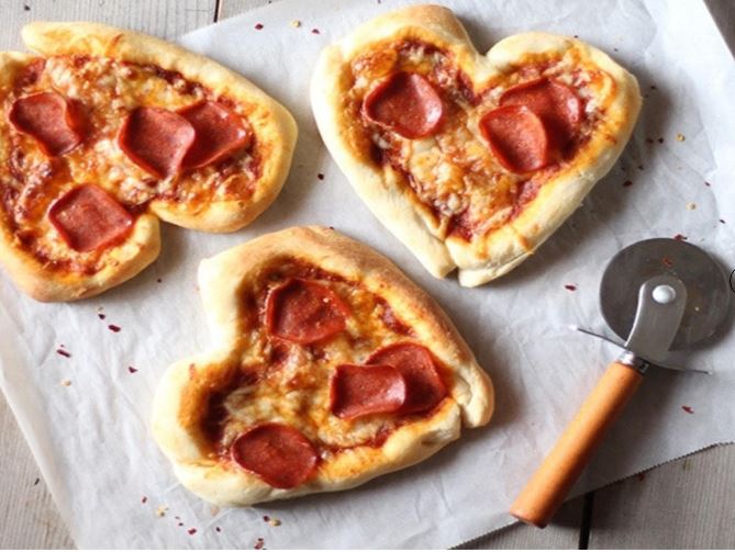 طبق شهي و خفيف و سهل التحضير ايضاً على مائدة عيد الحب، يمكنك صنع عجينة البيتزا على شكل قلب و تزيينها باضافات مميزة من اللون الاحمر بالفلفل الاحمر والبيبروني.