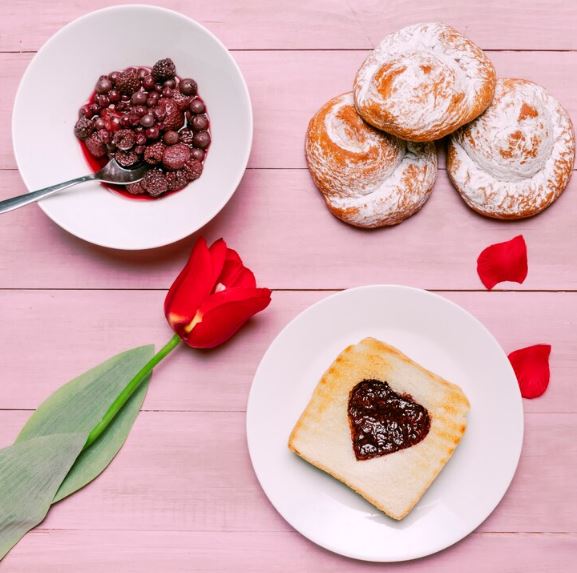 إذا احتجت إلى فكرة سريعة في اللحظة الأخيرة، جرب هذه الحيلة البسيطة.شرائح خبز محمص مزينة بقلوب من المربى ستنال إعجاب شريكك بلا شك.
