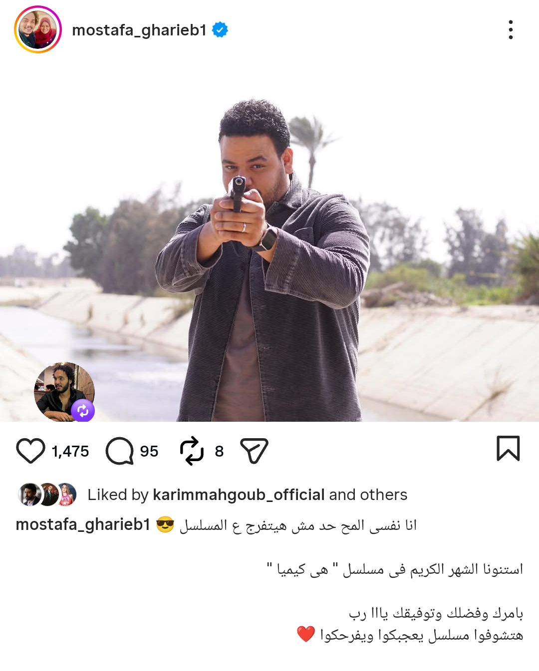 «المسلسل هيفرحكوا».. مصطفى غريب يشوق جمهوره لـ «هي كيميا» بطريقة طريفة