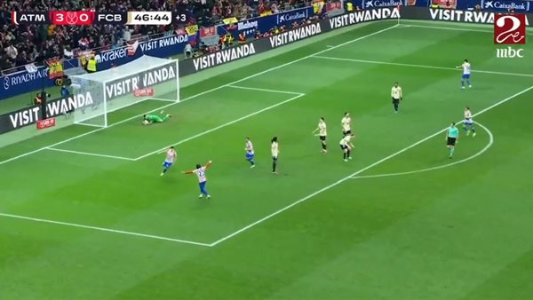 فيما نجح لوكمان من تسجيل الهدف الثالث في الدقيقة 33، نجح النجم الأرجنتيني الدولي ألفاريز من تسجيل الهدف الرابع لفريق أتلتيكو مدريد والثاني له في شباك برشلونة في الدقيقة 45 من عمر الشوط الأول بنصف نهائي كأس ملك إسبانيا.