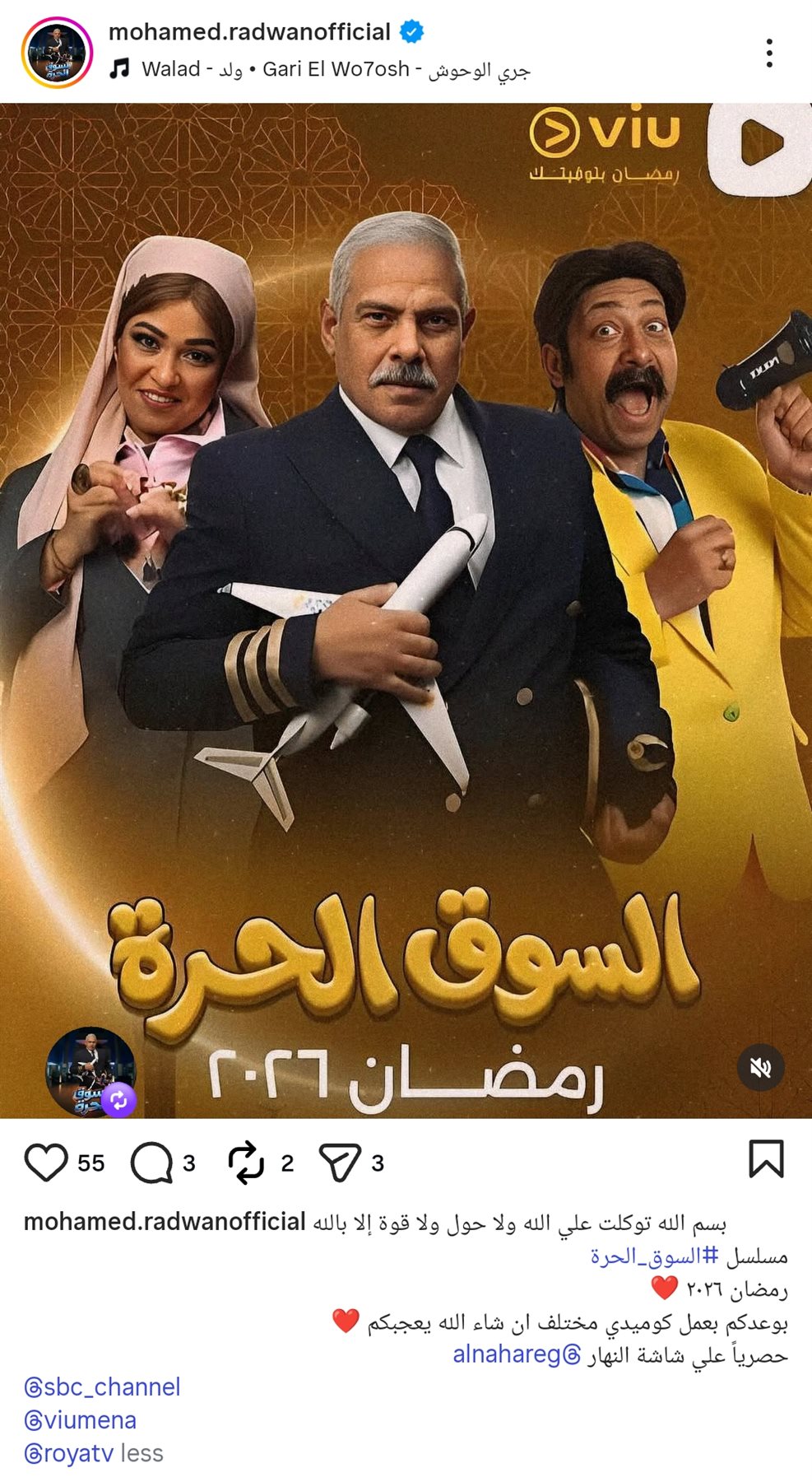 أضاف: «بوعدكم بعمل كوميدي مختلف ان شاء الله يعجبكم.. حصرياً علي شاشة النهار».