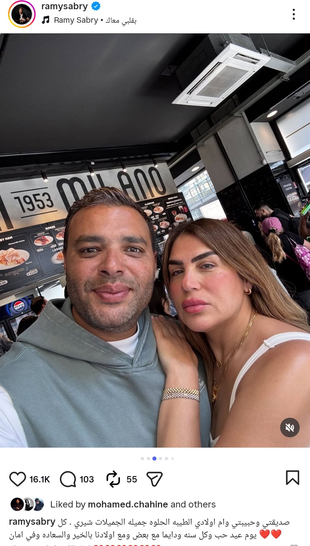 وكتب رامي صبري من خلال حسابه الرسمي عبر موقع تبادل الصور والفيديوهات القصيرة إنستجرام، قال: صديقتي وحبيبتي وام اولادي الطيبه الحلوه جميله الجميلات شيري.. كل يوم عيد حب وكل سنه ودايما مع بعض ومع اولادنا بالخير والسعاده وفي امان.
