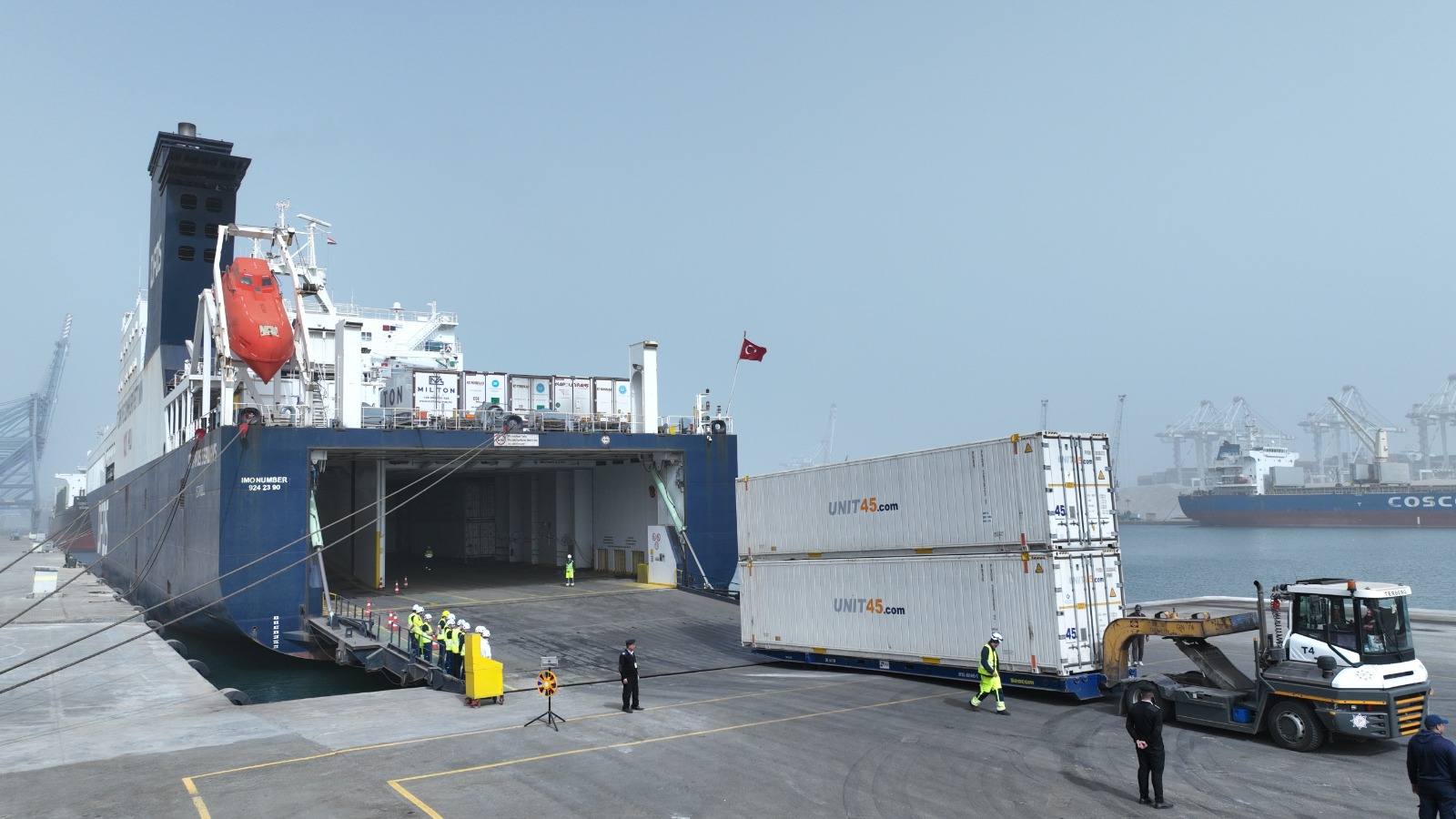 حيث تفقد الوزير محطة الشحن البحري الخاصة بخط (الرورو) الرابط بين مينائى دمياط وتريستا الايطالى والتى تديرها مجموعة بان مارين ، حيث أطلع على أعمال التشغيل والتداول الى جانب الخدمات التى تقدمها المحطة لعملائها بالتزامن مع رسو سفينة الرورو OLYMPOS SEAWAYS والتي ترفع علم تركيا ( خلال رحلتها رقم 61 للميناء والمنتظر أن تقوم بتداول 4025.6 طن بضائع تشمل 1395.43 طن بضائع وارد و 2630.18 طن صادر عبارة عن ملابس ومنسوجات و قطع غيار سيارات وضفائر كهربائية و خضروات و فواكه طازجة ) .و حيث يمثل هذا الخط ركيزة أساسية لدعم حركة التجارة وزيادة الصادرات المصرية خاصة البضائع سريعة التلف ، وسرعة نفاذ البضائع المصرية الى الأسواق الأوروبية ، كما أطلع الوزير على إجمالي عدد الرحلات للخط منذ بدايته حتى الاًن والتي بلغت 60 رحلة بإجمالي تداول 143830 طن منهم 67885 طن وارد عبارة عن تفاح ومعدات متنوعة ، كما بلغ حجم البضائع الصادر 75945 طن فواكه وخضروات متنوعة وملابس و أقمشة و منسوجات و ضفائر كهربائية وقطع غيار سيارات .