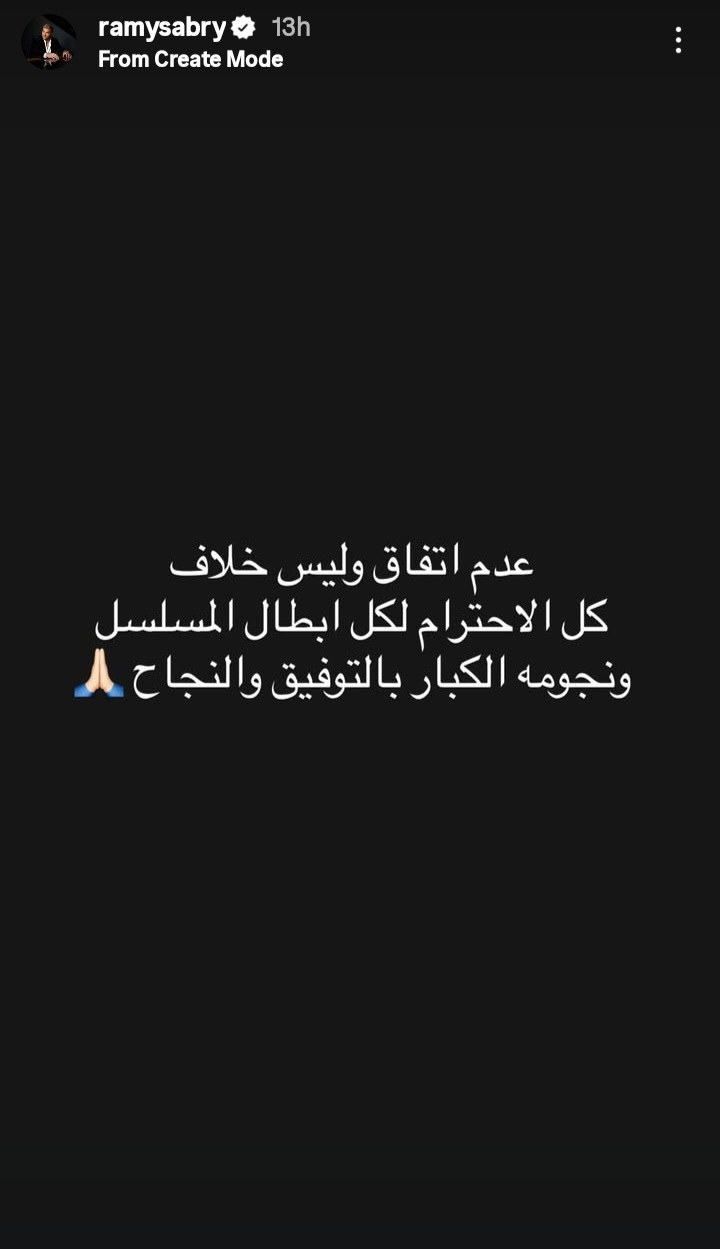 ونشر صبري ستوري يوضح من خلال سبب إلغائه غناء التتر من خلال حسابه الرسمي "إنستجرام"، قائلا: "عدم اتفاق وليس خلاف، كل الاحترام لكل أبطال المسلسل ونجومه الكبار، بالتوفيق والنجاح".