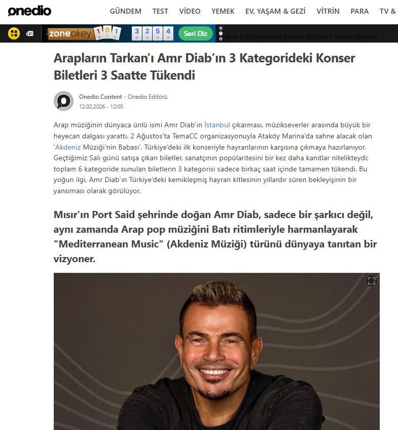 وخلال 3 ساعات فقط، نفدت التذاكر في 3 من هذه الفئات، وهو ما يعكس الشعبية الكبيرة التي يتمتع بها عمرو دياب لدى الجمهور، خاصة في تركيا.