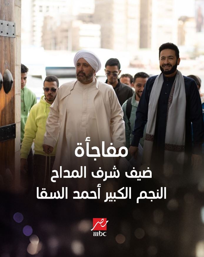 ونشر الحساب الرسمي للقناة صور من كواليس المسلسل النجمين أحمد السقا وحمادة هلال وعلقت عليه " مفاجأة ! ضيف شرف المداح أسطورة النهاية النجم الكبير أحمد السقا".