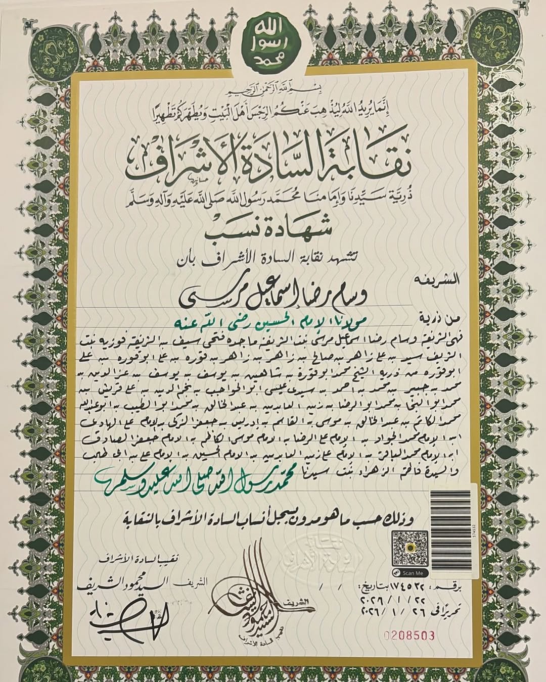 عادت الفنانة زينة لتتصدر محركات البحث بعد مشاركتها جمهورها بصورة شهادة نسب تؤكد انتماءها إلى الأشراف من نسل النبي محمد ﷺ مؤكدة أنها وأبناءها ينتمون إلى هذا النسب من جهة والدتها.