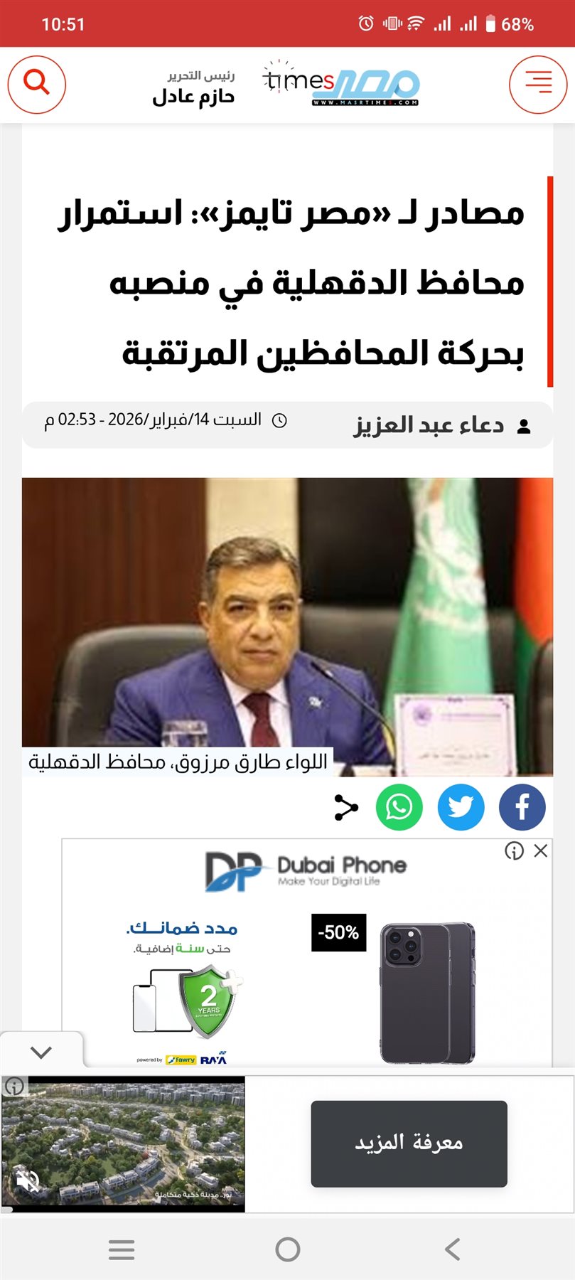 يأتي ذلك تأكيدًا لانفراد «مصر تايمز»، بشأن استمرار اللواء طارق مرزوق محافظًا للدقهلية ضمن حركة المحافظين التى أعلنت اليوم الاثنين.