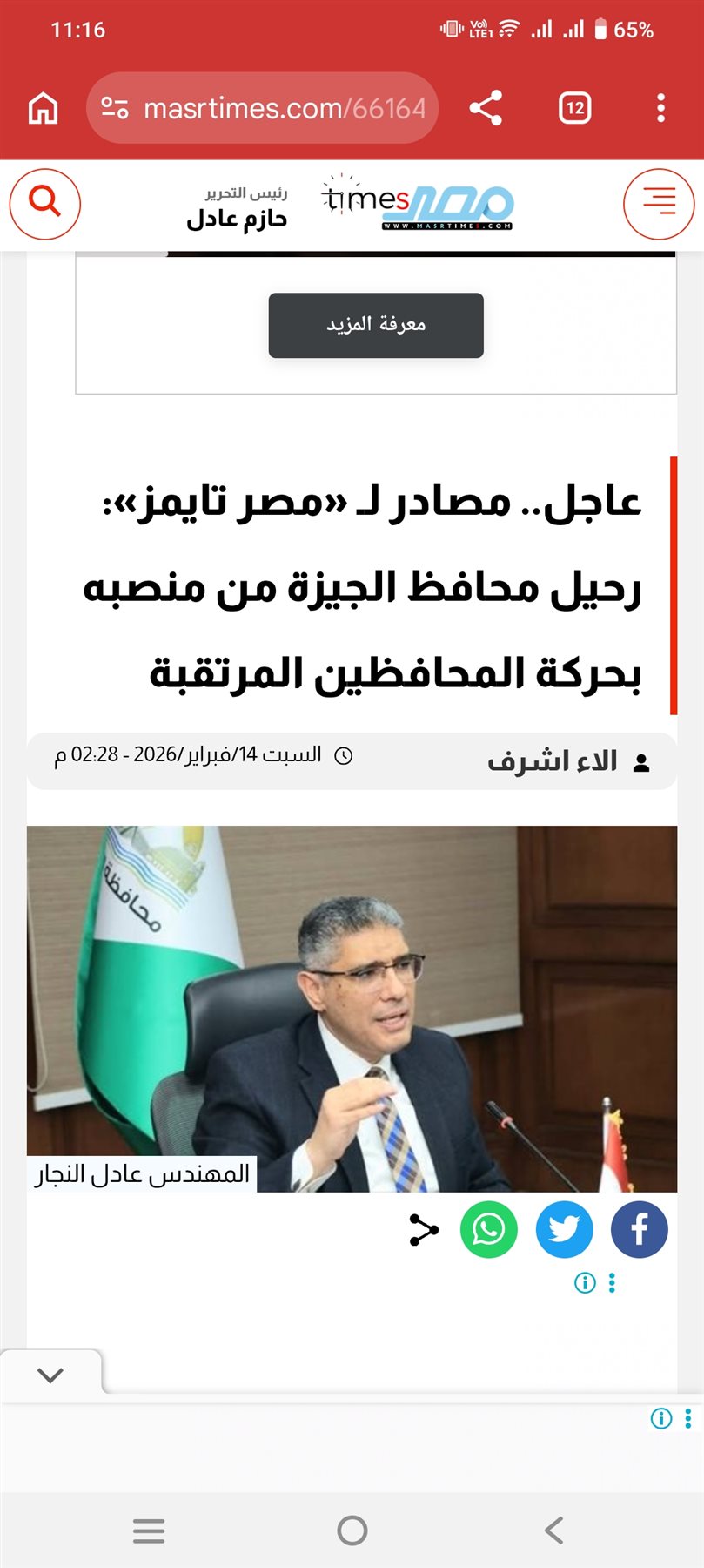 يأتي ذلك تأكيدًا لانفراد «مصر تايمز»، بشأن رحيل المهندس عادل النجار عن محافظة الجيزة، ضمن حركة المحافظين،