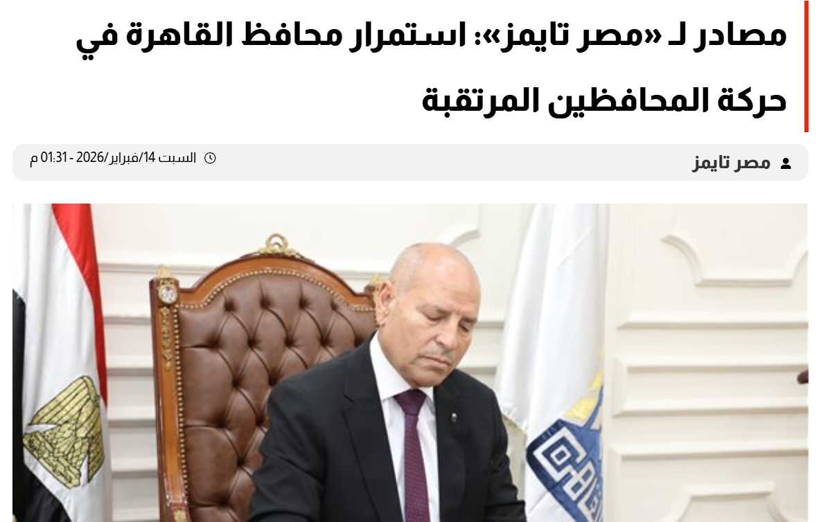 يأتي ذلك تأكيدًا لـ«مصر تايمز» بشأن استمرار الدكتور إبراهيم صابر، في منصبه محافظا للقاهرة ضمن حركة المحافظين الجدد التي أعلنت اليوم.