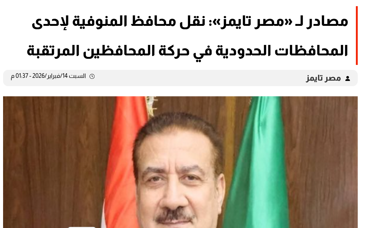 يأتي ذلك تأكيدًا «مصر تايمز» بشأن نقل اللواء إبراهيم أبو ليمون، محافظ المنوفية لإحدى المحافظات الحدودية، وتحديد محافظة بورسعيد، ضمن حركة المحافظين التي أعلنت اليوم.