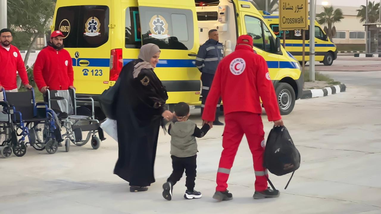 وفي سياق متصل، تواصل فرق الهلال الأحمر المصري جهودها الإنسانية، وعلى معبر رفح من الجانب المصري، في استقبال وتوديع الدفعة الـ 11 من الجرحى والمرضى والمصابين الفلسطينيين الوافدين والمغادرين، ومرافقتهم في إنهاء إجراءات العبور.