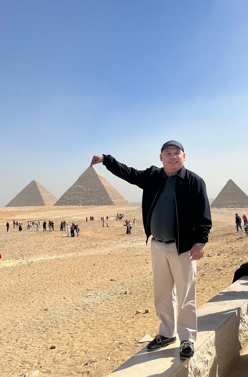 و شرح د.عبد البصير المسلة المعلقة للملك رمسيس الثاني في ساحة المتحف المصري الكبير، وتمثال رمسيس الثاني في مدخل كبار الزوار، حيث التقى الوفد بالدكتور أحمد غنيم، رئيس هيئة المتحف المصري الكبير، والتقطوا الصور التذكارية توثيقًا لهذه الزيارة المتميزة التي تجمع بين البحث العلمي والتقدير الدولي للحضارة المصرية.