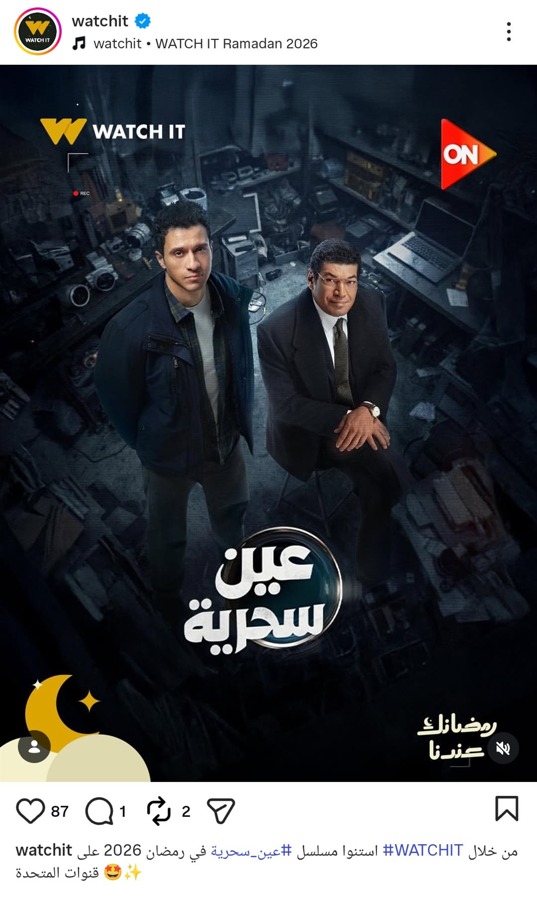 روجت منصة Watch it الرقمية لـ مسلسل عين سحرية بطولة الفنان عصام عمر والفنان باسم سمرة، والذي من المقرر عرضه في رمضان 2026.
