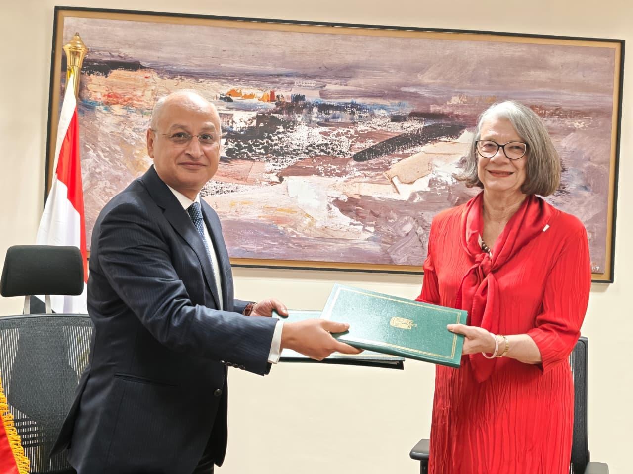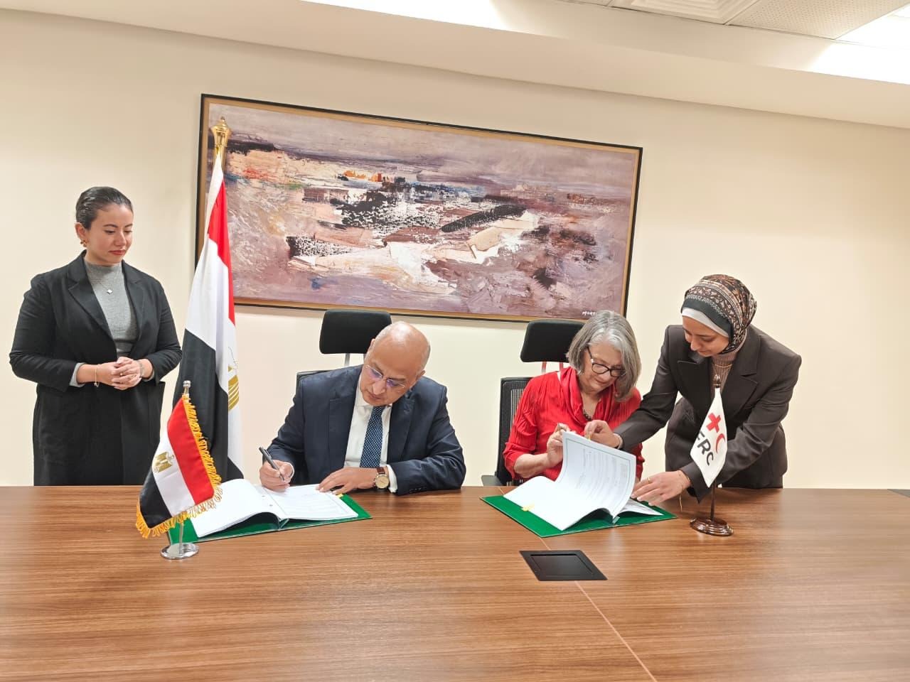 وقد شهدت جلسة المباحثات في ختامها توقيع اتفاقية مقر الاتحاد الدولي لجمعيات الصليب والهلال الأحمر بالقاهرة، والتي ستيسر له أداء عمله في مصر على نحو يسهم في توثيق علاقات التعاون وتبادل الخبرات بين الاتحاد وجهات الاختصاص الوطنية وجمعية الهلال الأحمر المصري.
