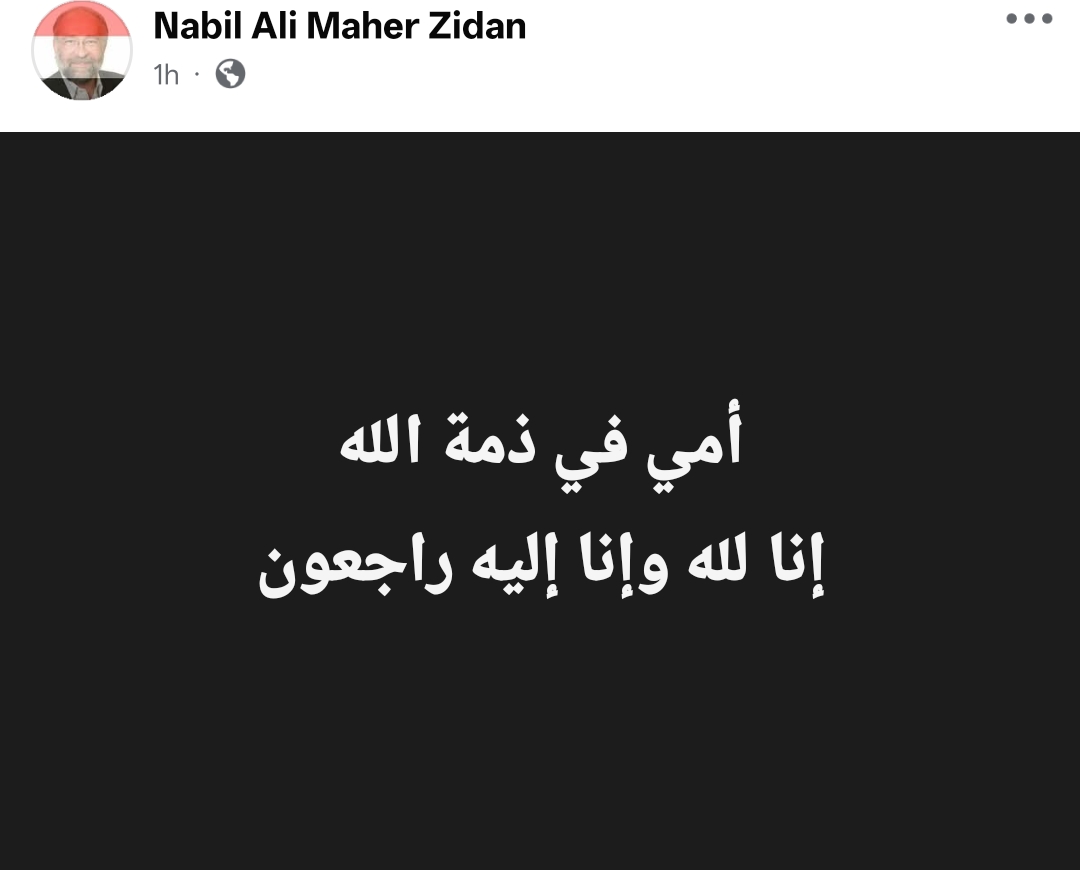 وكتب نبيل علي ماهر في منشور له من خلال حسابه الرسمي عبر موقع التواصل الاجتماعي فيسبوك، قال: أمي في ذمة الله.. إنا لله وإنا إليه راجعون.
