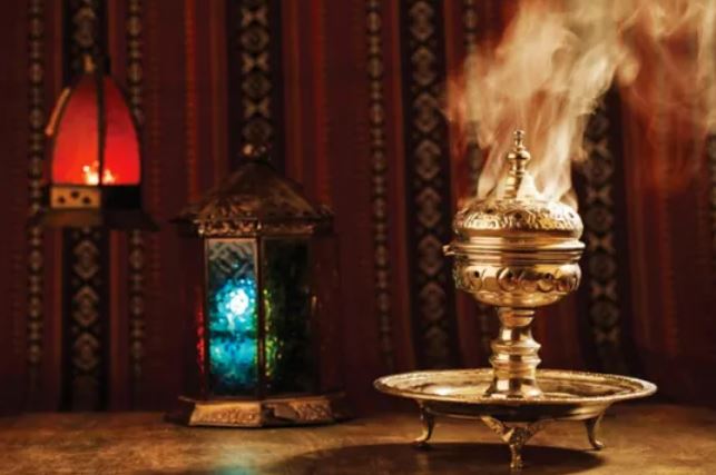 مجموعة متنوعة من الروائح العطرية والبخور المثالية لتعزيز الأجواء الروحانية للشهر الفضيل، مع التركيز على نفحات المسك والعود، بالإضافة إلى مبخرة أنيقة تُضفي طابعًا خاصًا يتماشى مع روحانية الشهر الكريم.