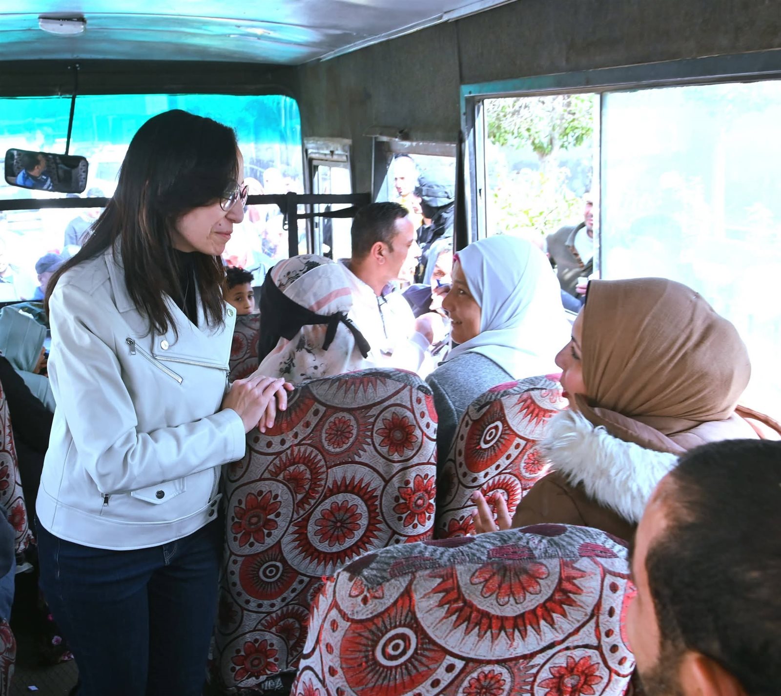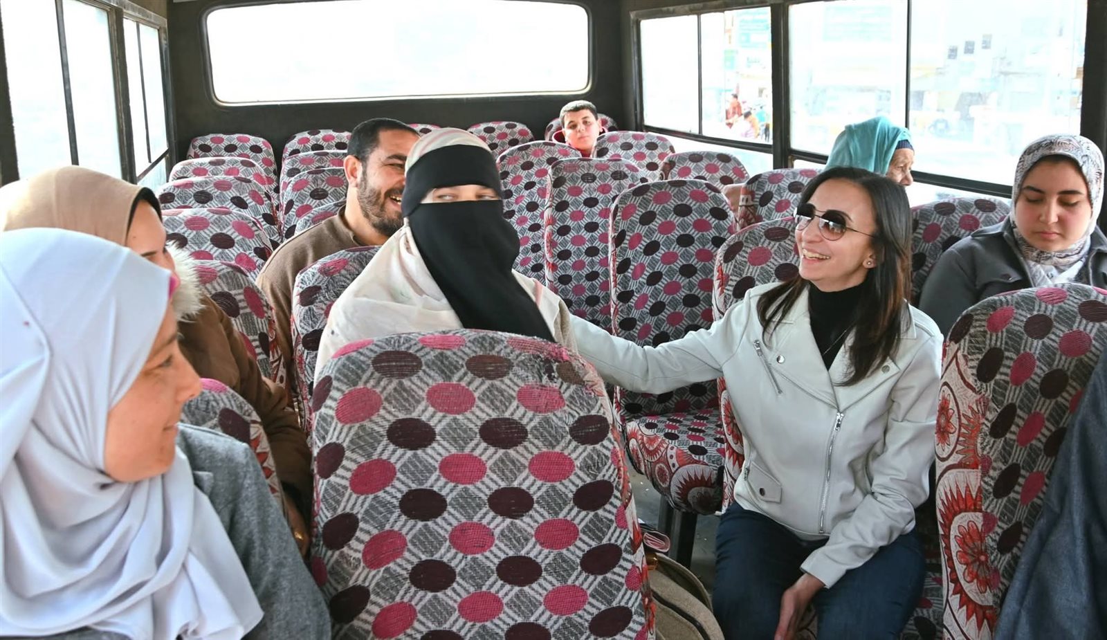 وأجرت المحافظ حوارًا مفتوحًا مع المواطنين داخل الأتوبيس، استمعت خلاله إلى شكواهم ومقترحاتهم بشأن خدمات النقل، مؤكدة أن التواصل المباشر مع الأهالي يمثل أولوية في العمل التنفيذي، ووعدت بدراسة المطالب والعمل على حلها في أقرب وقت.