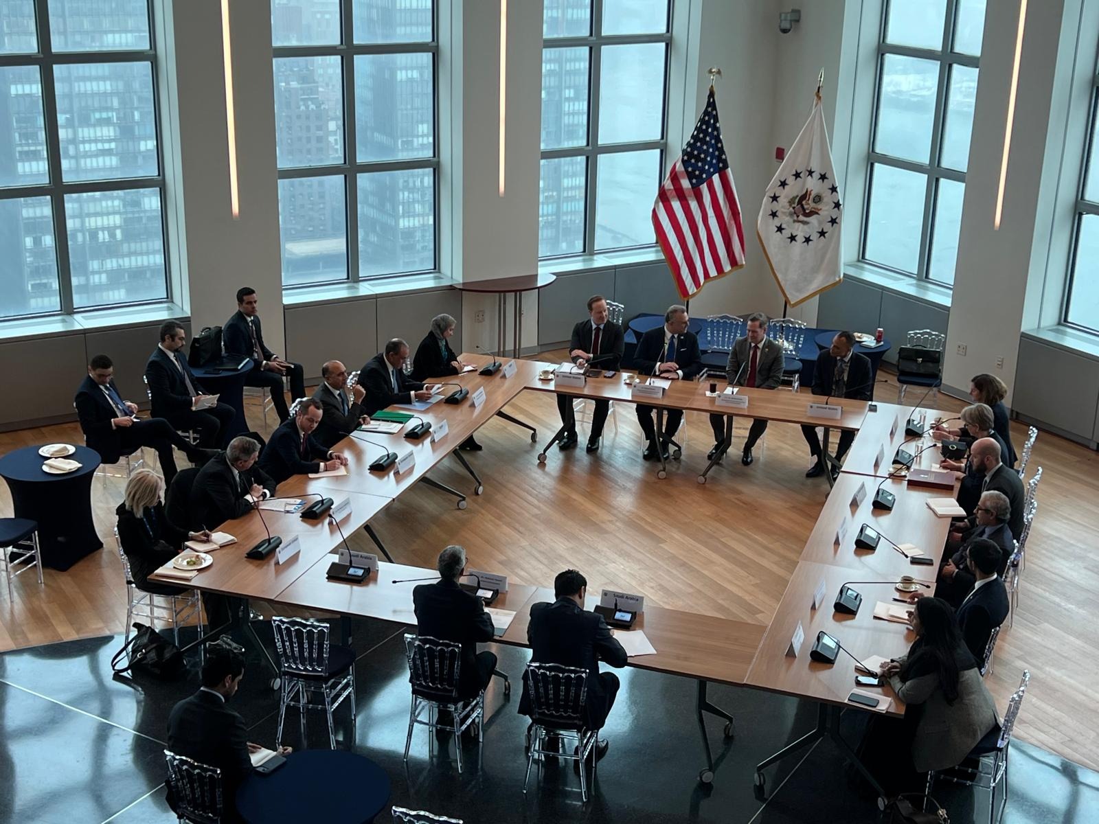 شارك في الاجتماع كل من السيد شخبوط بن نهيان آل نهيان، وزير الدولة بوزارة الخارجية بدولة الإمارات العربية المتحدة، والسيدة إيفيت كوبر، وزيرة الخارجية بالمملكة المتحدة، والسيد مسعد بولس، كبير مستشاري الرئيس الأمريكي للشئون العربية والأفريقية، والسيدة أنيت فيبر، مبعوثة الاتحاد الأوروبي للقرن الأفريقي، ود. عبد العزيز الواصل، المندوب الدائم للملكة العربية السعودية لدي الأمم المتحدة، إلى جانب عدد من كبار المسؤولين.