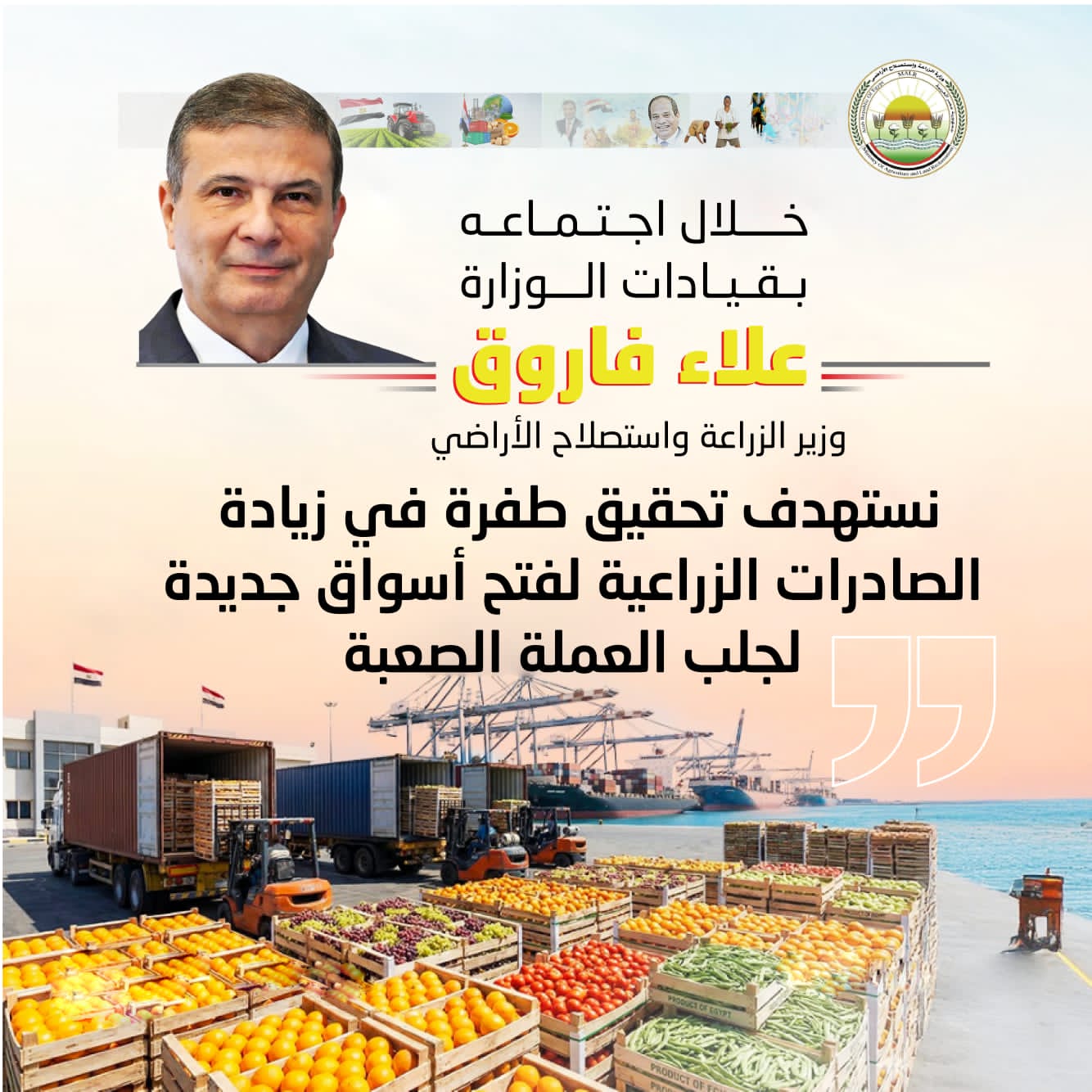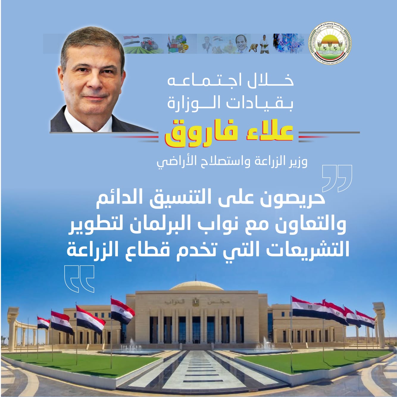 وأوضح الوزي،ر أن الوزارة تستهدف طفرة في زيادة الصادرات الزراعية لفتح أسواق جديدة وجلب العملة الصعبة، مشيراً إلى أهمية التنسيق الدائم والتعاون مع نواب البرلمان لتطوير التشريعات التي تخدم قطاع الزراعة.