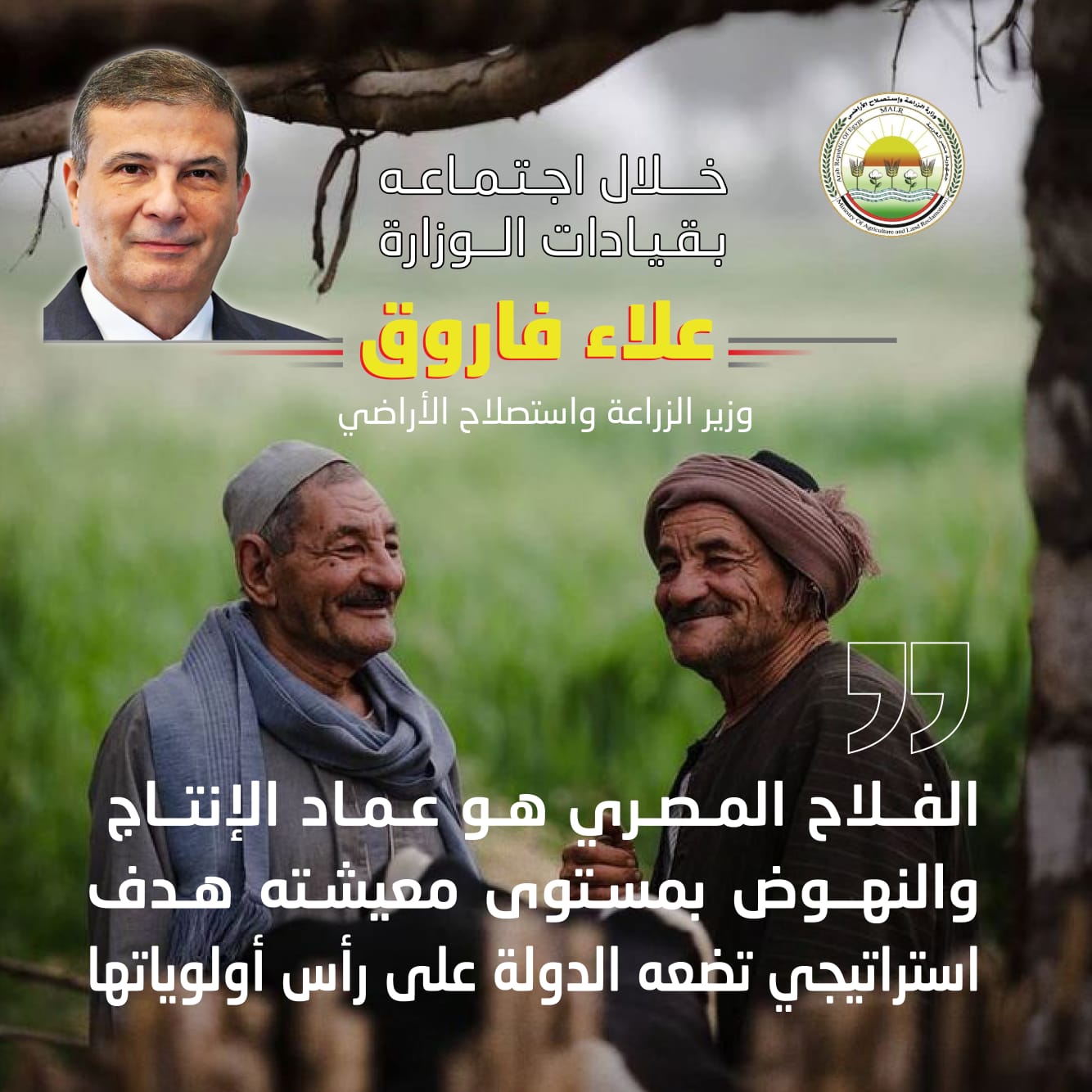 وأكد الوزير، أن الفلاح المصري هو عماد الإنتاج، موجهاً بتقديم كافة سبل الدعم له وعدم التهاون مع أي من تسول له نفسه التلاعب بمقدراته، أو تعطيل الخدمات المقدمة له، معتبراً أن النهوض بمستوى معيشة الفلاح هو هدف استراتيجي تضعه الدولة على رأس أولوياتها لتحقيق طفرة حقيقية في القطاع الزراعي.
