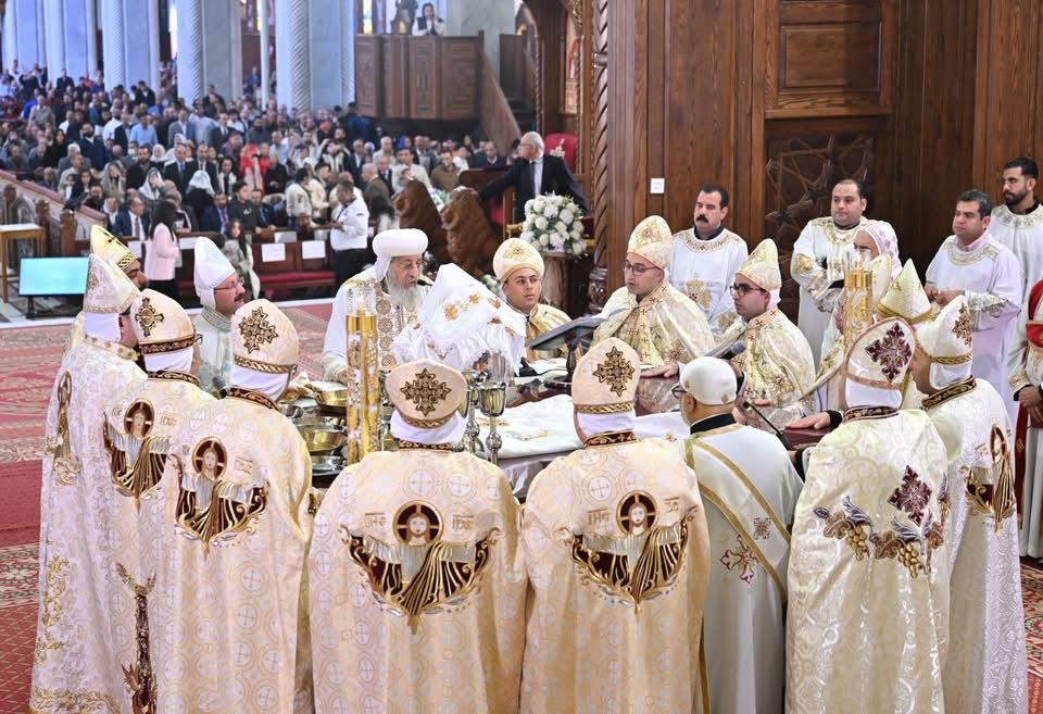 صلى قداسة البابا تواضروس الثاني، صباح اليوم، القداس الإلهي في الكاتدرائية المرقسية بالعباسية، بمشاركة ١٣ من أحبار الكنيسة ووكيل عام البطريركية بالقاهرة.