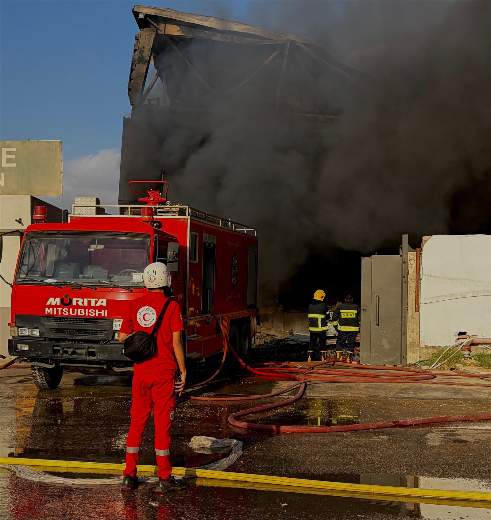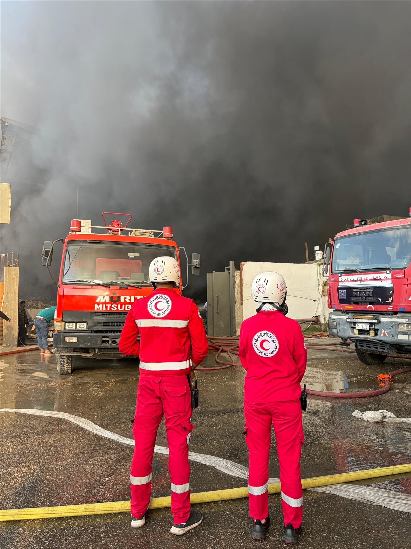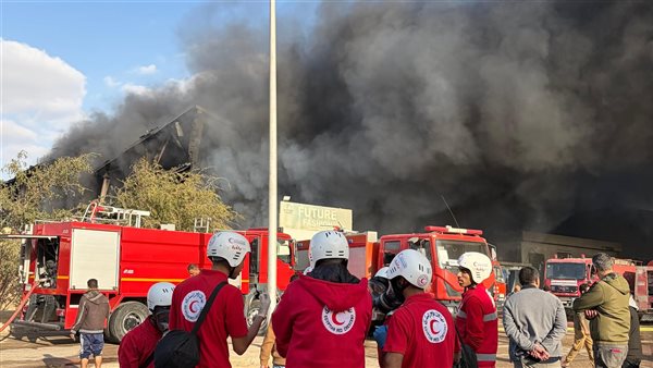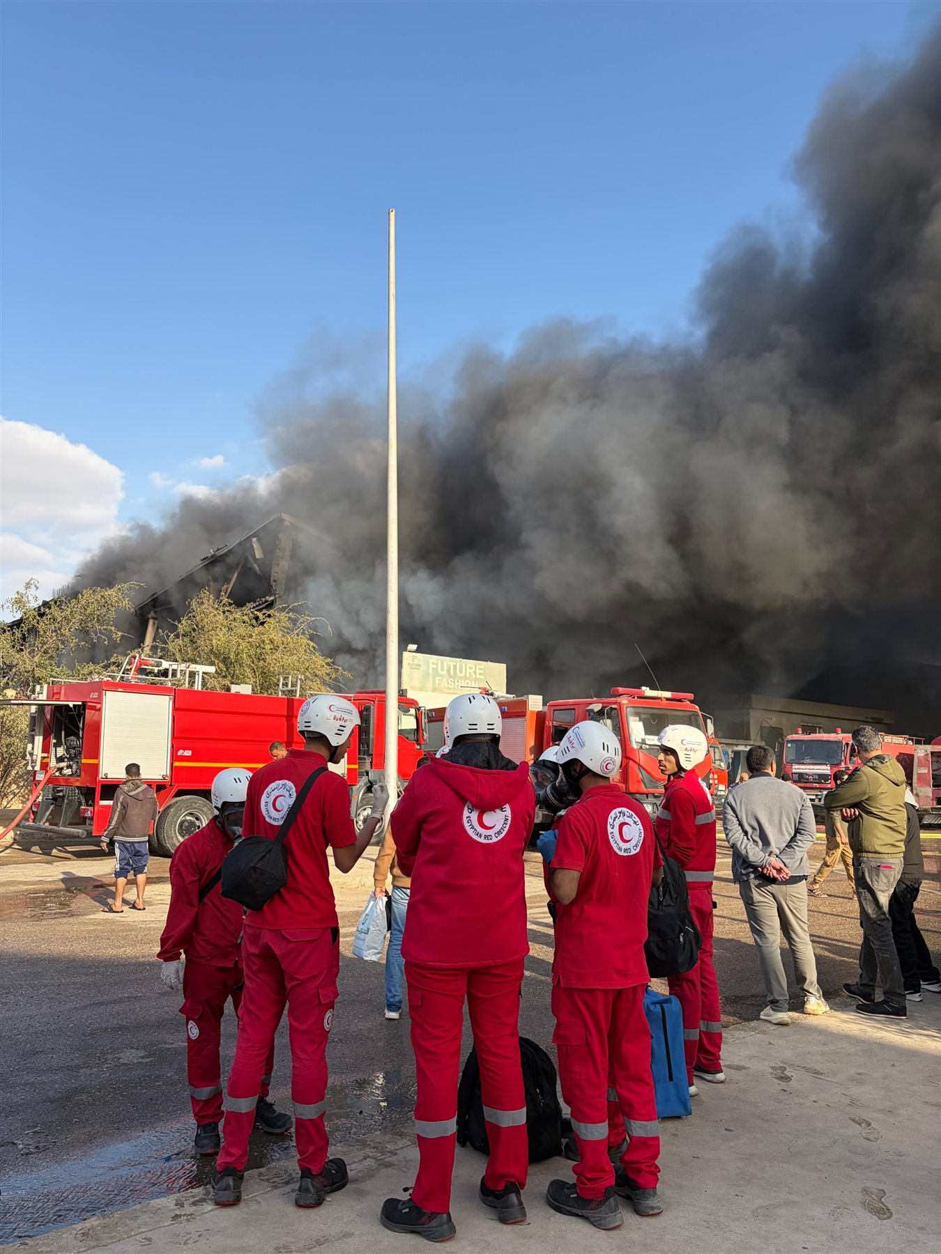 الهلال الأحمر المصري يساند جهود الحماية المدنية والإسعاف في حريق مصنع ملابس أكتوبر| صور