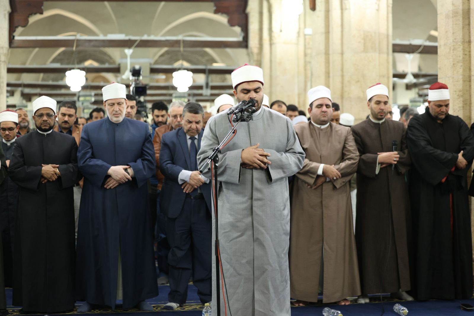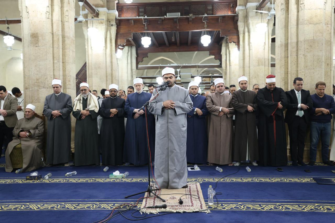 وأمَّ الطالب محمد عبد النبي جادو المصلين برواية الإمام شعبة عن الإمام عاصم الكوفي، حيث تلا آيات من سورة آل عمران بأداء متقن يعكس رسوخًا في علم القراءات وثباتًا في الإمامة، وسط أجواء إيمانية عامرة بالخشوع، بحضور قيادات الأزهر وعلمائه، يتقدمهم فضيلة أ.د محمد الضويني، وكيل الأزهر.