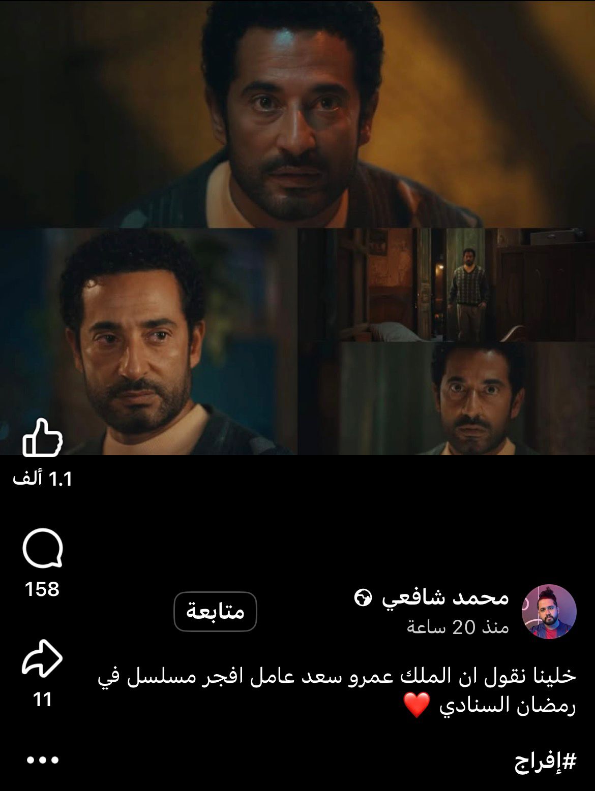 وقال دعاء أحمد: «مسلسل إفراج أفضل افتتاحيه في دراما رمضان لهذا العام»، وواصل يوسف أحمد: «أفضل بدايه لدراما رمضان 2029 تحيه كبيره لعمرو سعد».