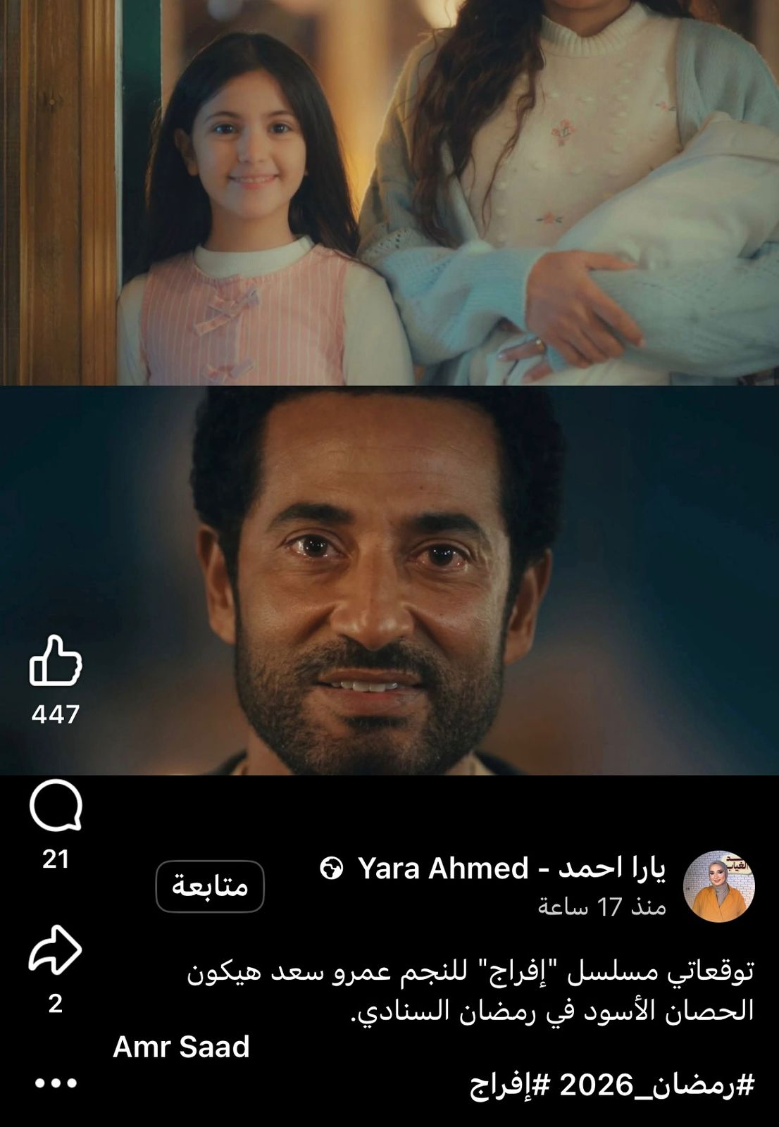 حيث قال حساب يدعى محمد شافعي: «عمرو سعد عامل مسلسل عظيم هذا العام، وقالت يارا أحمد، توقعاتي أن مسلسل إفراج لعمرو سعد هيكون الحصان الأسود لدراما رمضان 2026».