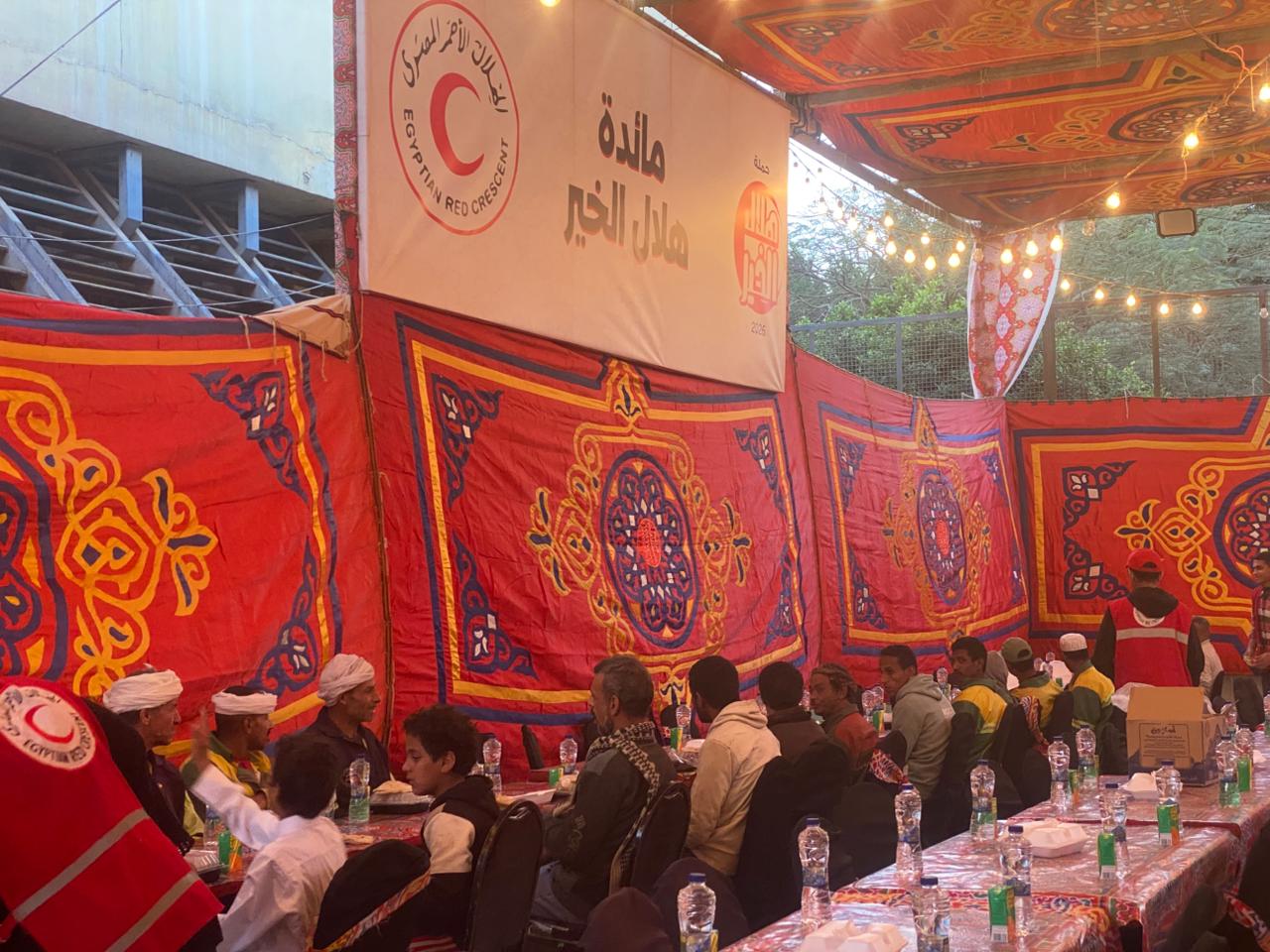 يواصل الهلال الأحمر المصري، في ثالث أيام رمضان، تنفيذ جهود الإطعام ضمن حملة «هلال الخير»، بإقامة مائدة الإفطار فى مقر الجمعية بمنطقة زينهم في حي السيدة زينب بالقاهرة، والذي يستهدف تقديم وجبات إفطار ساخنة لأهالي المنطقة.