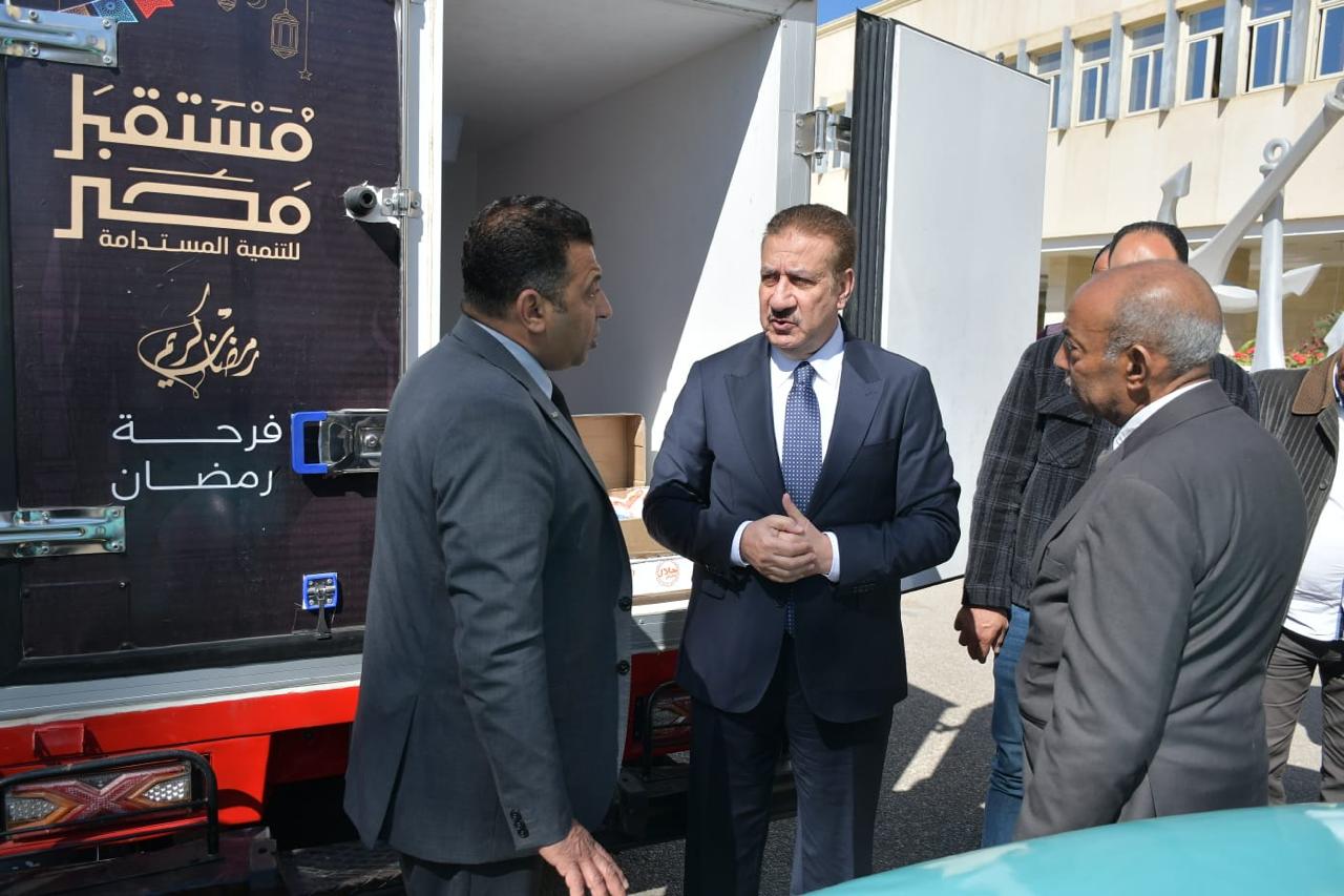 محافظ بورسعيد يتفقد سيارات السلع المخفضة المقدمة من جهاز مستقبل مصر