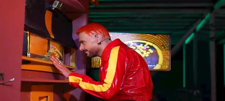 وقال رامز عن مصطفى "إيه اللي إنت لابسه، على قلبه اد كده، فاكر نفسه في موقف بنها، تباع على تريلا، وشنبه زي جناحات الطيارة".