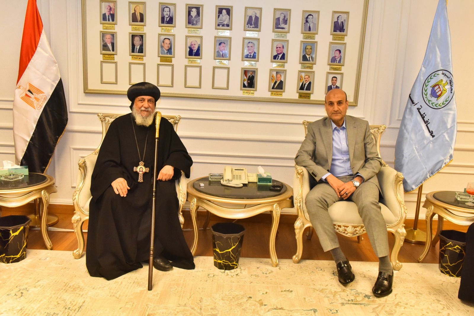 محافظ أسيوط يستقبل مطران الأقباط الأرثوذكس بالقوصية لتهنئته بتوليه مهام منصبه