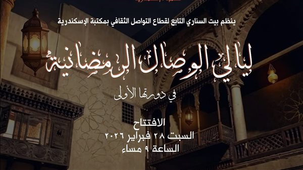 تنظم مكتبة الإسكندرية من خلال «بيت السناري» التابع لقطاع التواصل الثقافي، فعاليات «ليالي الوصال الرمضانية» في دورتها الأولى، وذلك يوم السبت الموافق 28 فبراير 2026، في تمام الساعة التاسعة مساءً، بمقر بيت السناري الأثري بحي السيدة زينب بالقاهرة.