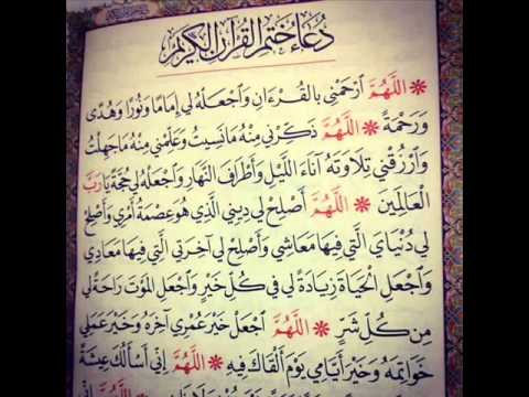 - "اللهم اجعل القرآن العظيم لقلوبنا ضياءً، ولأبصارنا جلاءً، ولأسقامنا دواءً، ومن النار مخلصاً، وللجنة قائداً وسائقاً يا رب العالمين."