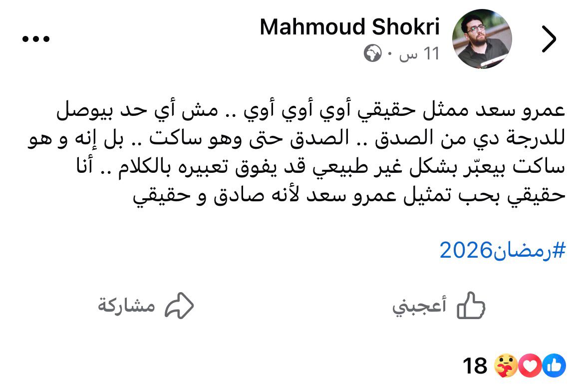 وقال حساب يدعى أسامة حامد، "عمرو سعد ممثل حقيقي أوي مش أي حد بيوصل للدرجة دي من الصدق الصدق حتى وهو ساكت بل إنه و هو ساكت بيعبّر بشكل غير طبيعي قد يفوق تعبيره بالكلام أنا حقيقي بحب تمثيل عمرو سعد لأنه صادق و حقيقي".