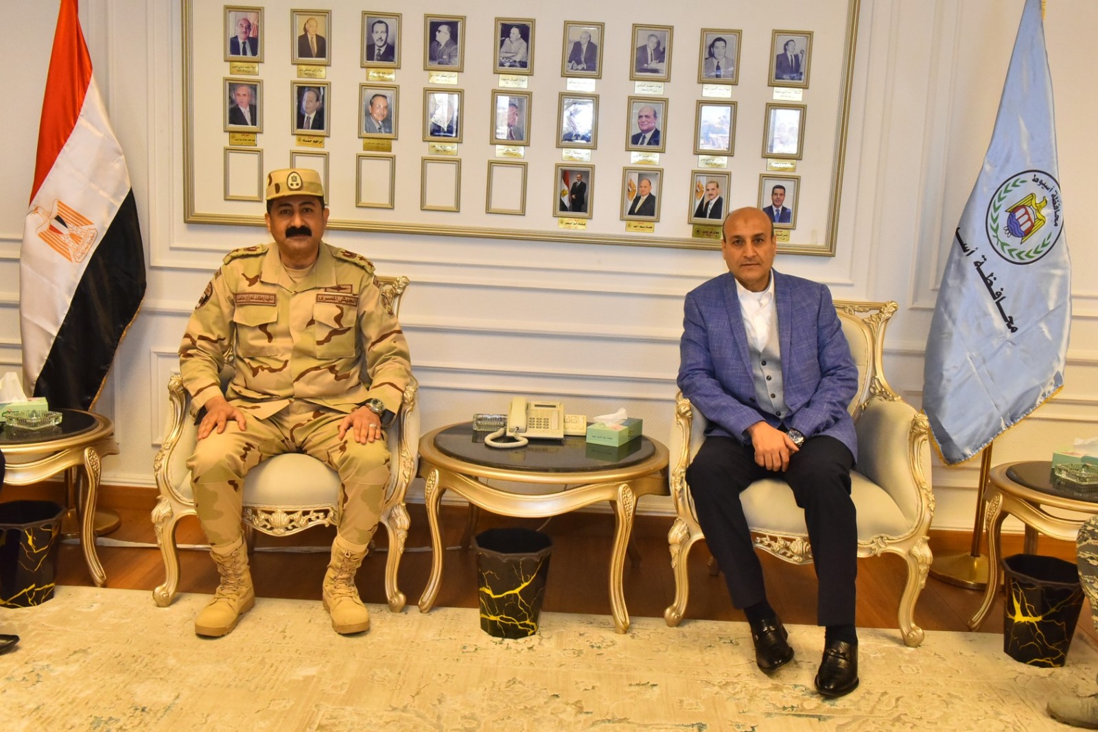 وخلال اللقاء، قدم المستشار العسكري التهنئة للمحافظ بمناسبة توليه مسؤولية قيادة العمل التنفيذي بمحافظة أسيوط، متمنيًا له التوفيق في استكمال مسيرة التنمية وتحقيق تطلعات المواطنين.