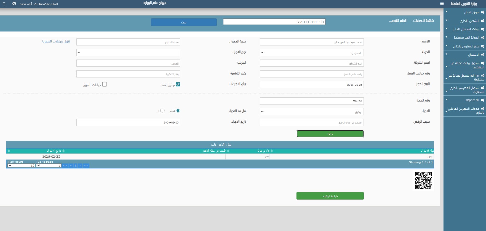 وأوضحت الوزارة أن المنظومة الجديدة تدخل مرحلة الإطلاق التجريبي لمدة شهر كامل، يتم خلالها العمل بالنظامين الإلكتروني والورقي جنبًا إلى جنب داخل وحدة خدمات العمالة المصرية بالخارج، لضمان الانتقال الآمن والمنظم إلى النظام الرقمي، واختبار كفاءة التطبيق فنيًا وإداريًا، واستيعاب ملاحظات المواطنين والعاملين، تمهيدًا للإطلاق الفعلي الكامل عقب انتهاء الفترة التجريبية.في أسرع وقت ممكن ..