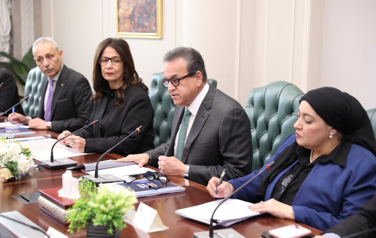 استقبل الدكتور خالد عبدالغفار، وزير الصحة والسكان، الدكتور أسامة الأزهري وزير الأوقاف، والدكتورة جيهان زكي وزيرة الثقافة، لبحث توحيد الخطاب الإعلامي والثقافي والديني والتوعوي بشأن القضية السكانية في مصر، بهدف تحقيق التوازن بين النمو السكاني والاقتصادي، وتنشئة أجيال صحية واجتماعية سوية ضمن أسر مستقرة توفر احتياجاتها الأساسية، خاصة الصحة والتعليم.