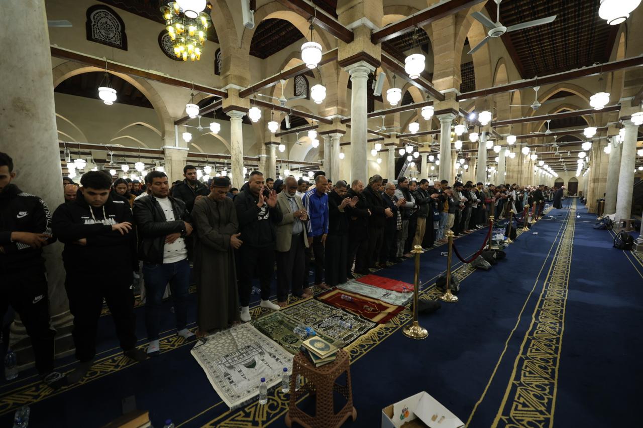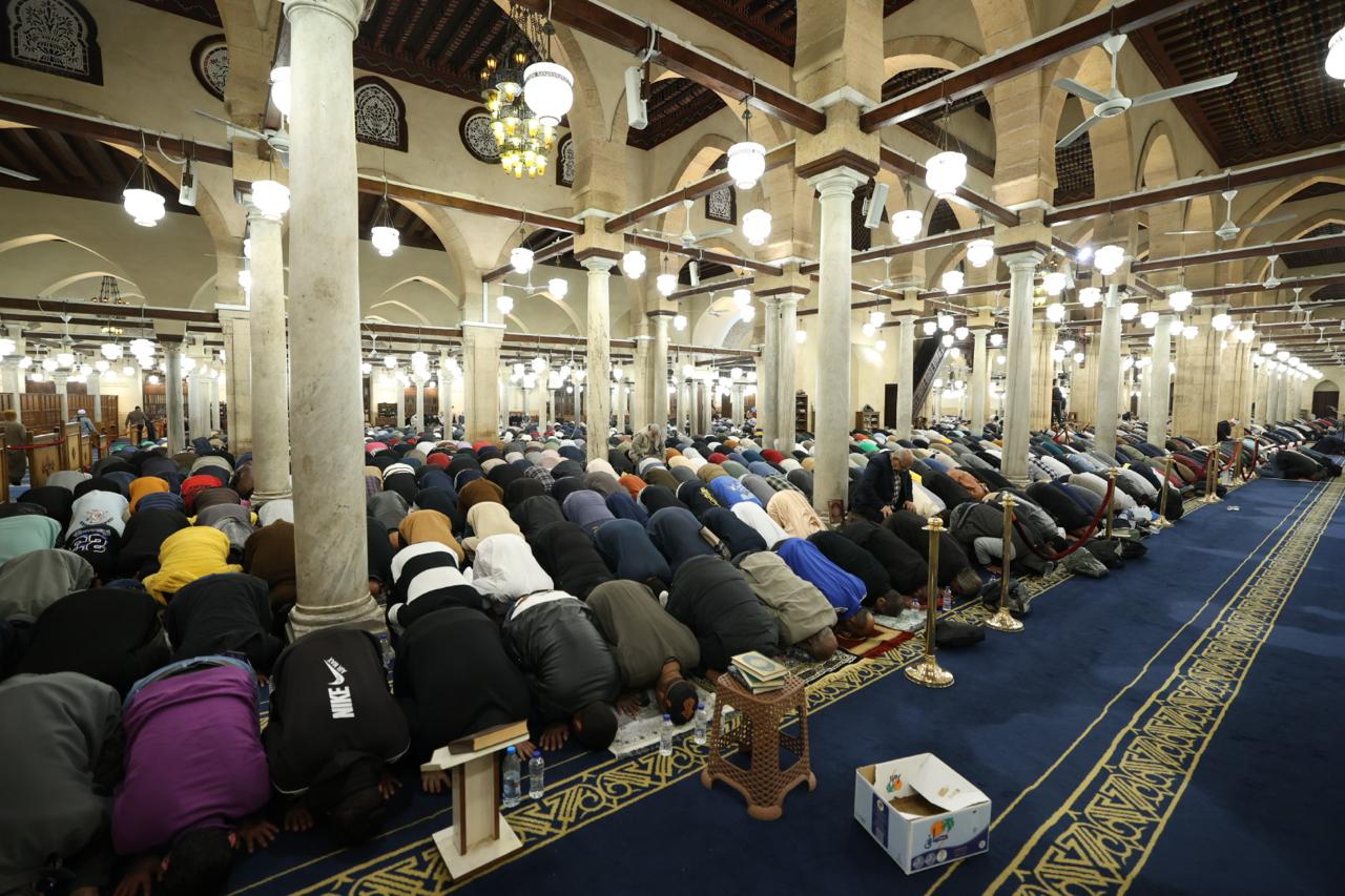 الآلاف يتوافدون إلى الجامع الأزهر لأداء صلاتى العشاء والتراويح بالقراءات العشر