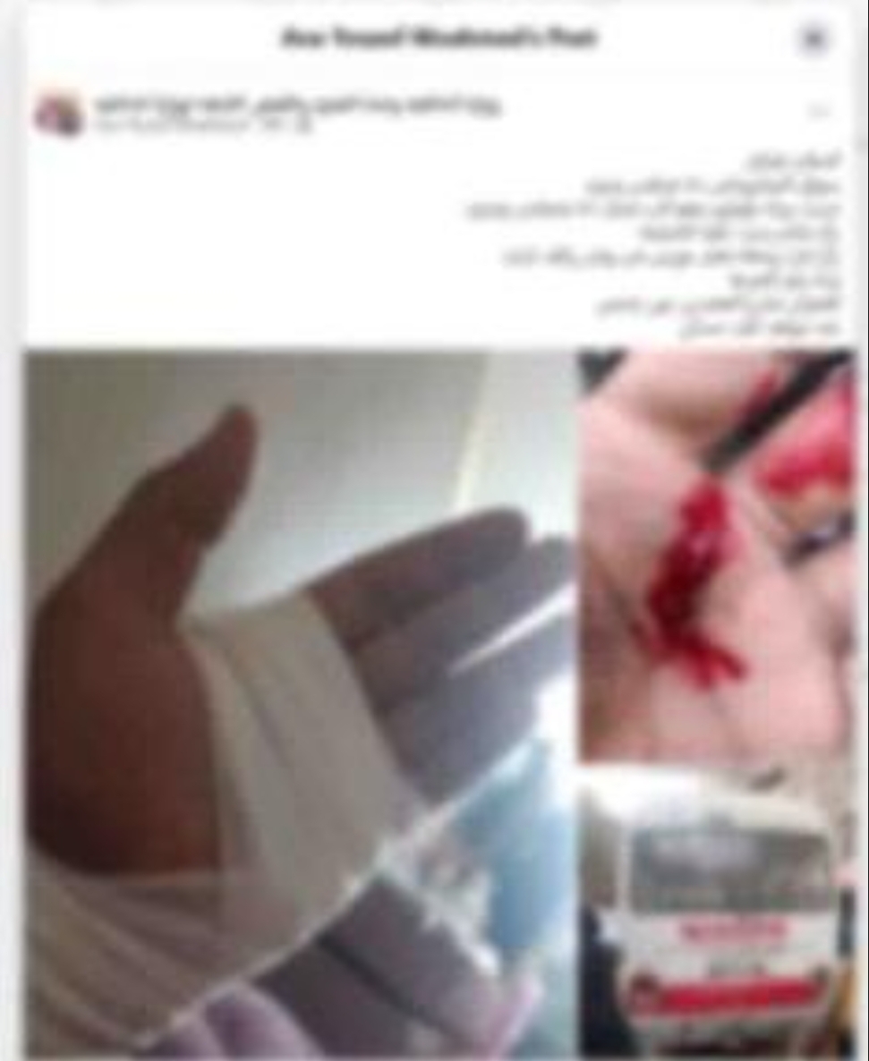 وبالفحص، تبين عدم ورود بلاغات رسمية بشأن الواقعة، حيث جرى تحديد هوية القائم على النشر، وهو عامل في مجال التسويق العقاري ومصاب بجرح في اليد، ويقيم بدائرة قسم شرطة عين شمس.