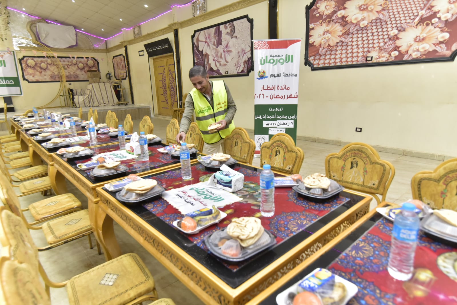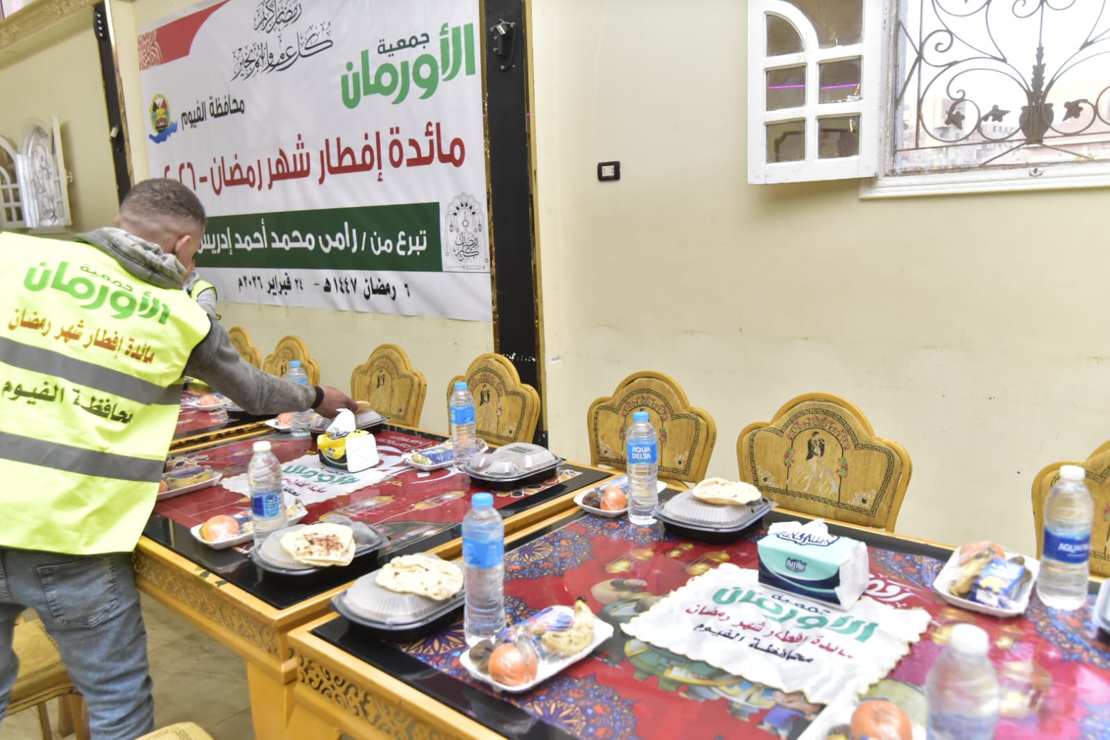 تواصل جمعية الأورمان تنفيذ حملتها السنوية لإفطار الصائمين بمحافظة الفيوم خلال شهر رمضان المبارك من خلال تنظيم موائد إفطار يومية وتوزيع وجبات ساخنة على الأسر الأولى بالرعاية وذلك تحت إشراف كامل ومباشر من مديرية التضامن الاجتماعي بالفيوم في إطار تعزيز منظومة الحماية الاجتماعية ودعم الفئات الأكثر احتياجًا.