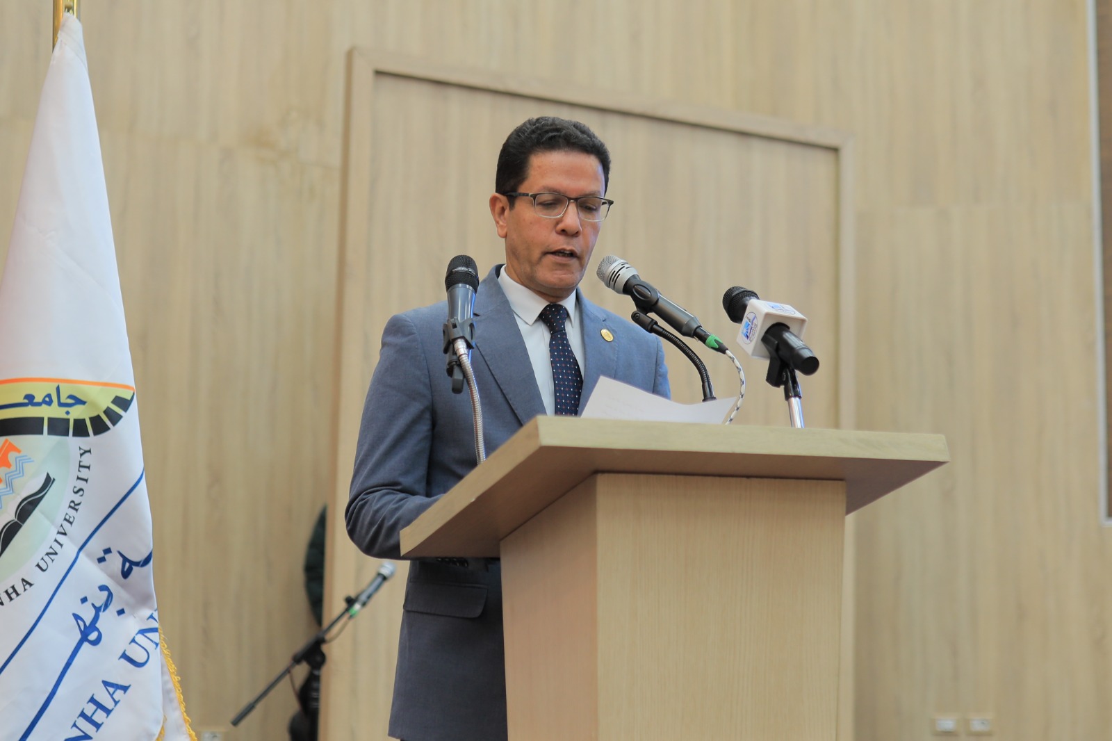 وخلال كلمته قال الدكتور ناصر الجيزاوي رئيس جامعة بنها أن هذه الفعالية ليست مجرد مناسبة دينية، بل هي رسالة إنسانية وحضارية، تؤكد أن ذوي الهمم هم أصحاب قدرات خاصة، وأنهم قادرون على الإبداع والعطاء في كل مجال، وأنهم جزء أصيل من نسيج هذا الوطن، يضيئون حياتنا بالأمل ويذكروننا دومًا بقوله تعالى: "إِنَّ أَكْرَمَكُمْ عِندَ اللَّهِ أَتْقَاكُمْ" ، وأن القرآن الكريم هو لغة القلوب التي لا تعرف حدودًا أو عوائق.