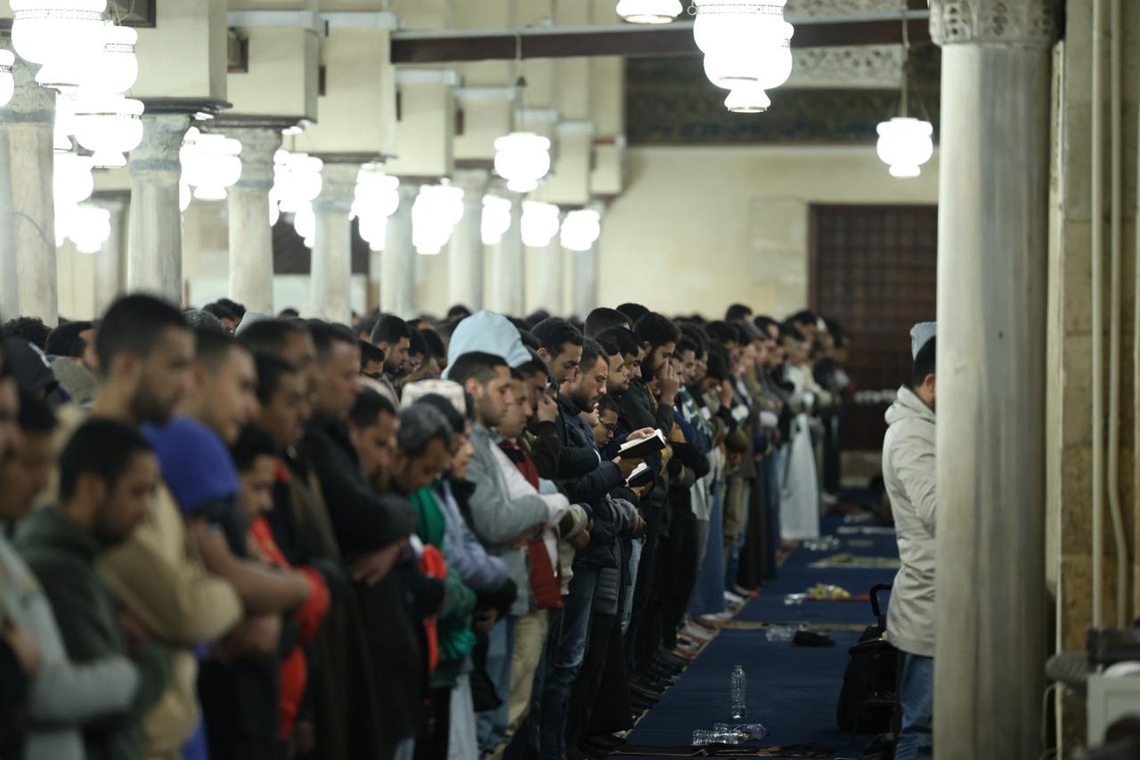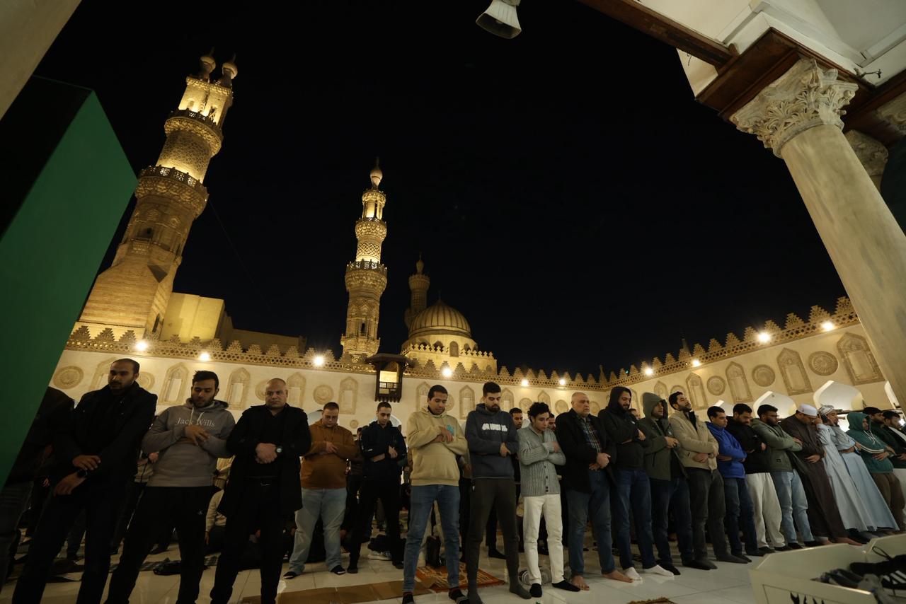 آلاف المصلين يؤدون صلاتي العشاء والتراويح في الليلة الثانية عشرة من رمضان بالجامع الأزهر